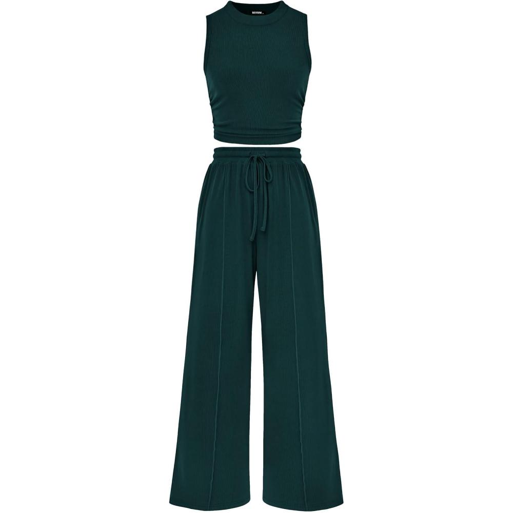 PRETTYGARDEN 2 Piece Sets for Women 2025 Summer Sleeveless Tank Ribbed Travel Beach Vacation Spring Lounge Wear Outfits(Dark Green)