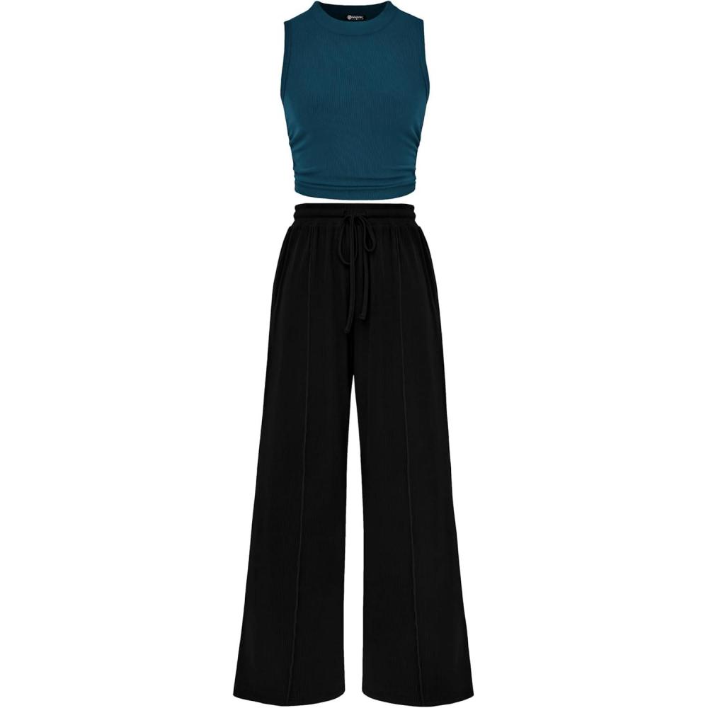 PRETTYGARDEN 2 Piece Sets for Women 2025 Summer Sleeveless Tank Ribbed Travel Beach Vacation Spring Lounge Wear Outfits(Lake Blue Black)