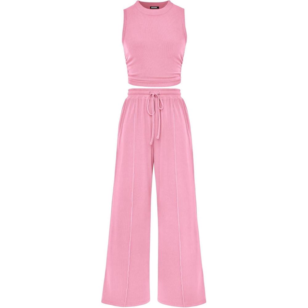 PRETTYGARDEN 2 Piece Sets for Women 2025 Summer Sleeveless Tank Ribbed Travel Beach Vacation Spring Lounge Wear Outfits(Light Pink)