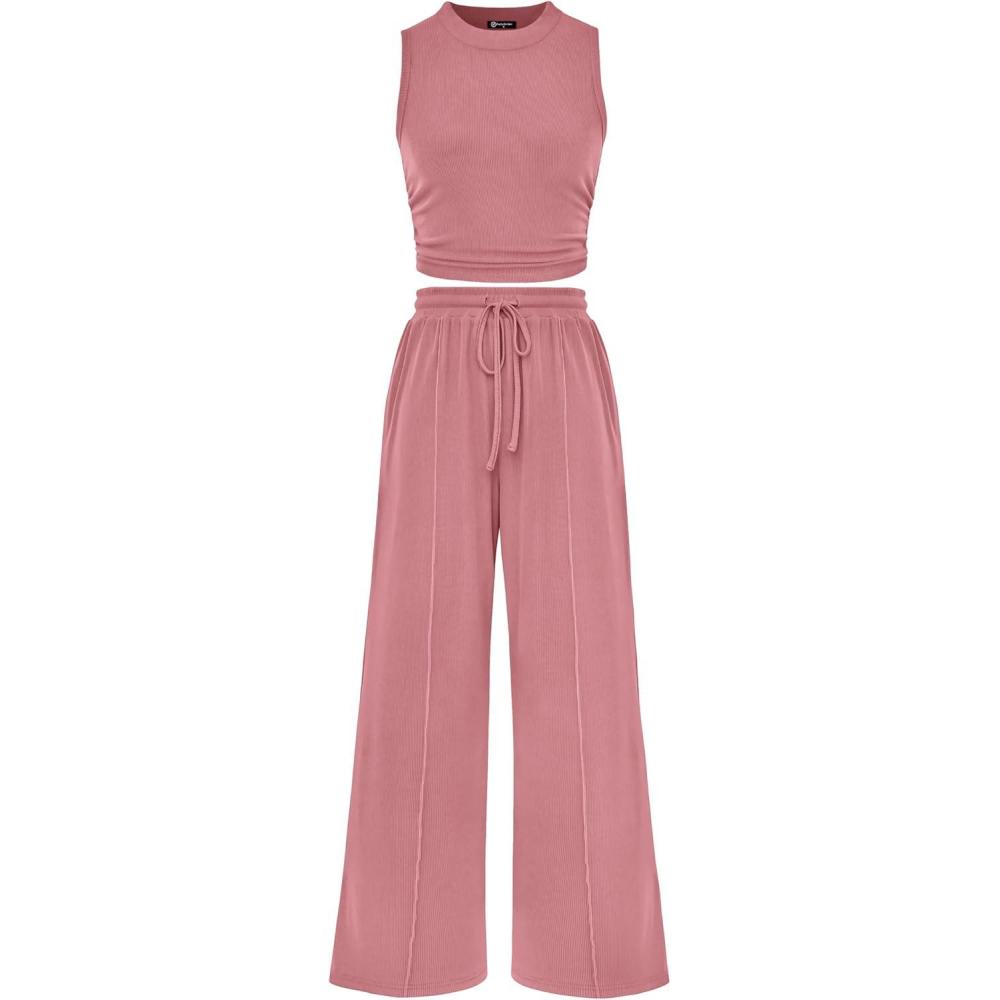 imagePRETTYGARDEN 2 Piece Sets for Women 2025 Summer Sleeveless Tank Ribbed Travel Beach Vacation Spring Lounge Wear OutfitsPink