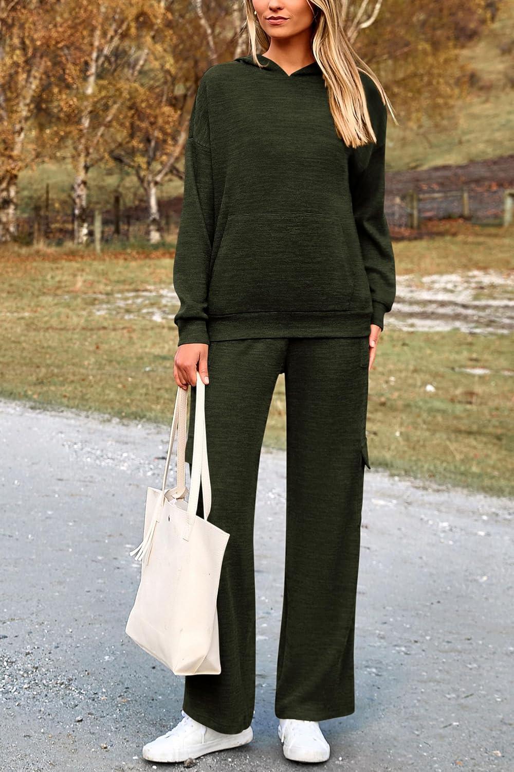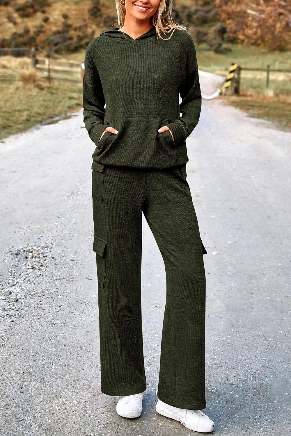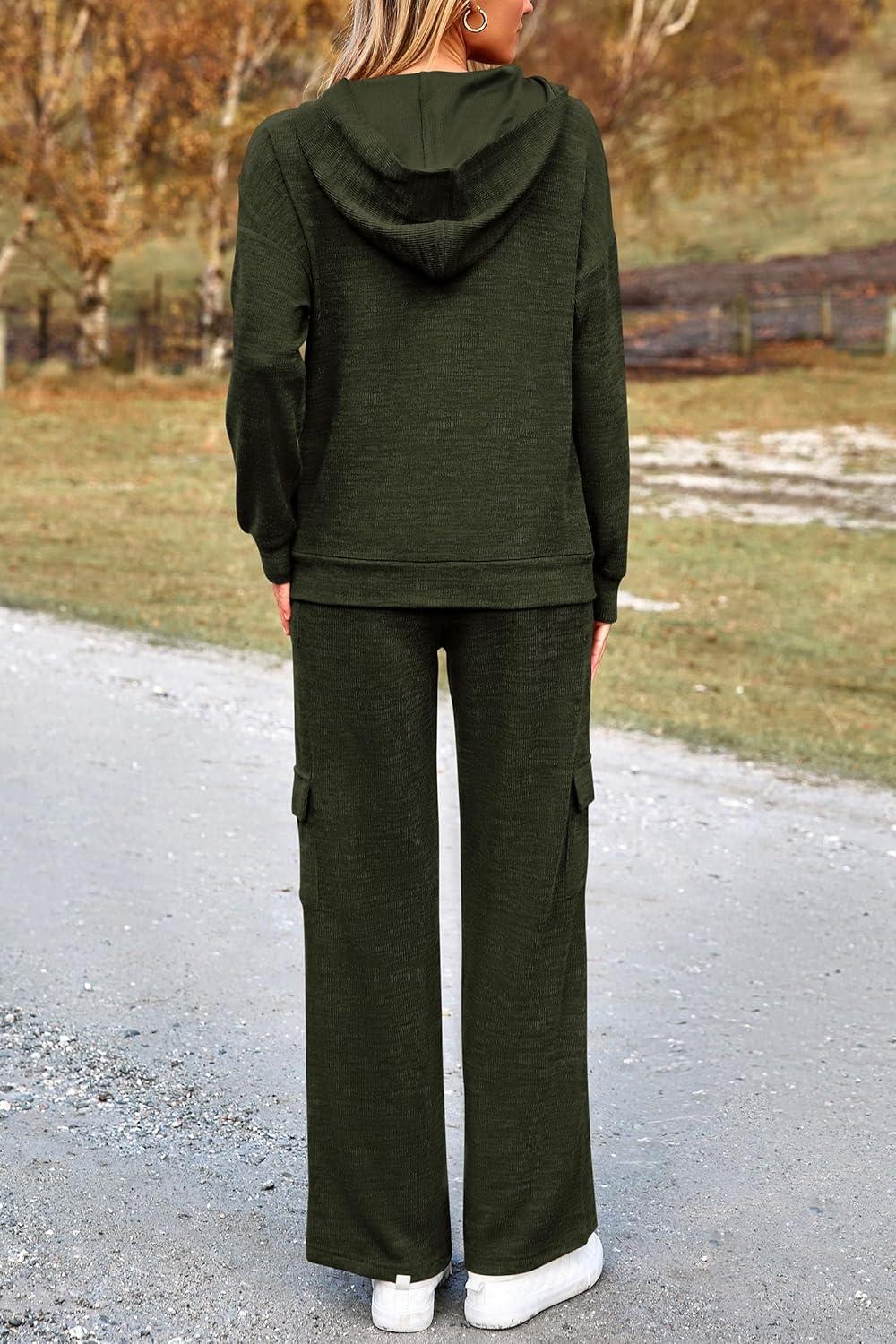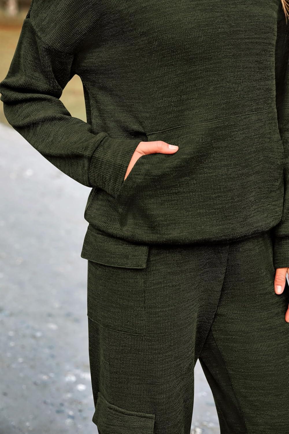 PRETTYGARDEN 2 Piece Sets for Women Fall 2025 Sweatsuits Outfits Lounge Matching Hoodie Set Travel Track Suits Winter Clothes(Army Green)