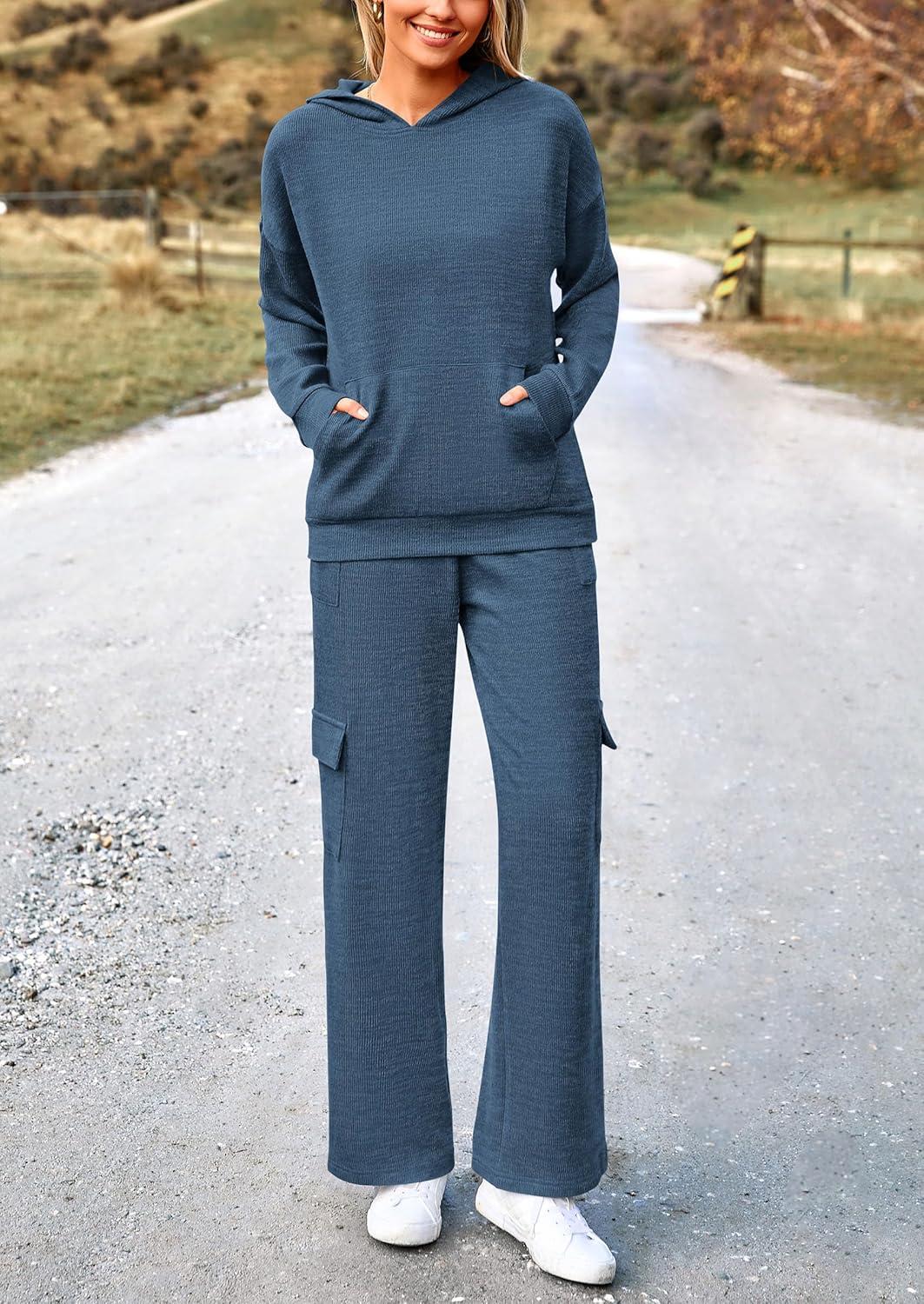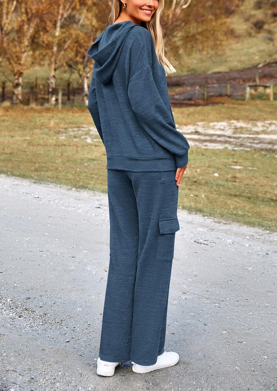 PRETTYGARDEN 2 Piece Sets for Women Fall 2025 Sweatsuits Outfits Lounge Matching Hoodie Set Travel Track Suits Winter Clothes(Dark Blue)