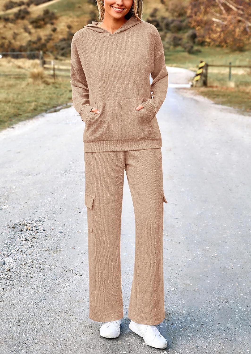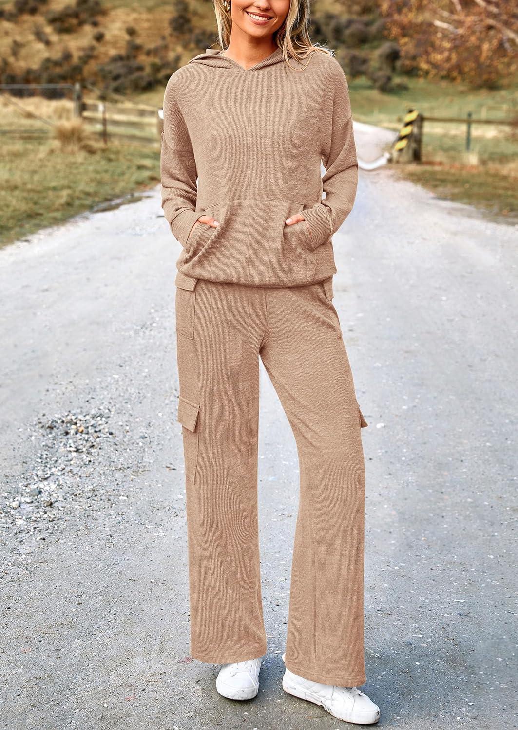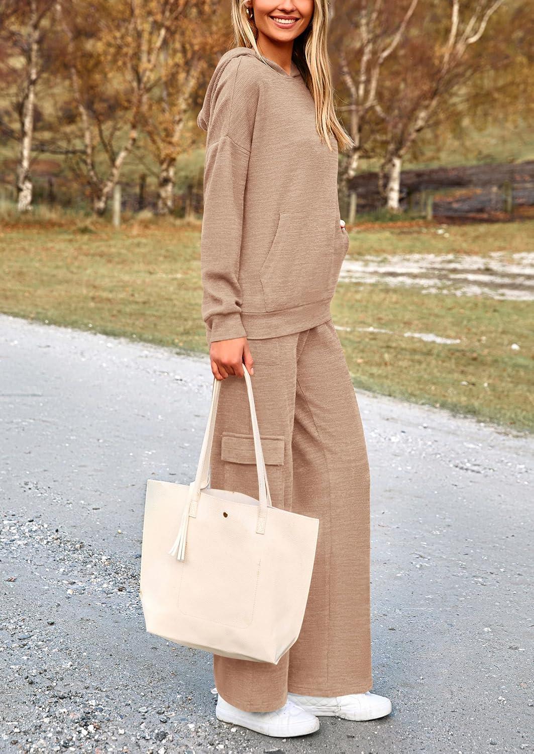 PRETTYGARDEN 2 Piece Sets for Women Fall 2025 Sweatsuits Outfits Lounge Matching Hoodie Set Travel Track Suits Winter Clothes(Light Khaki)