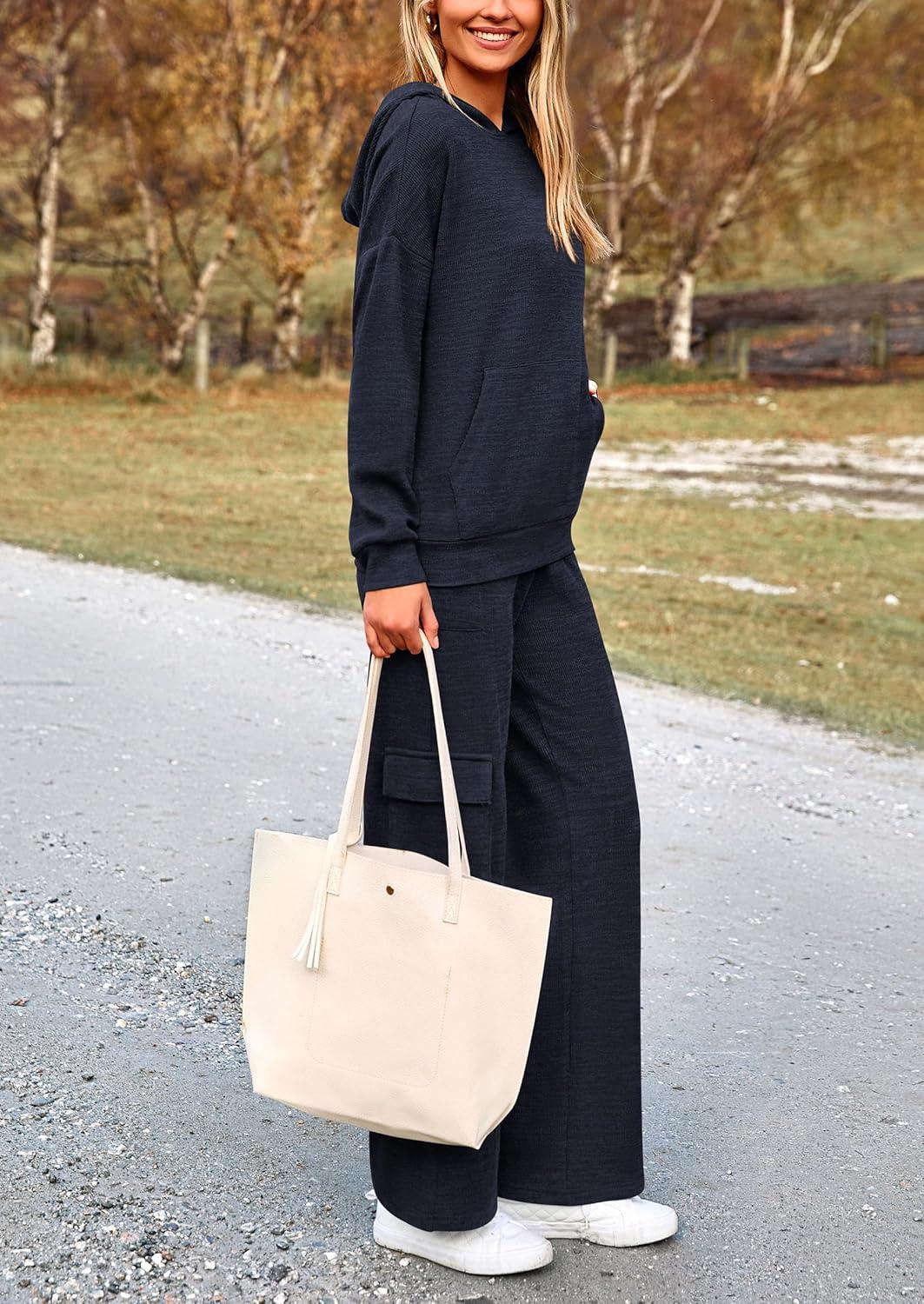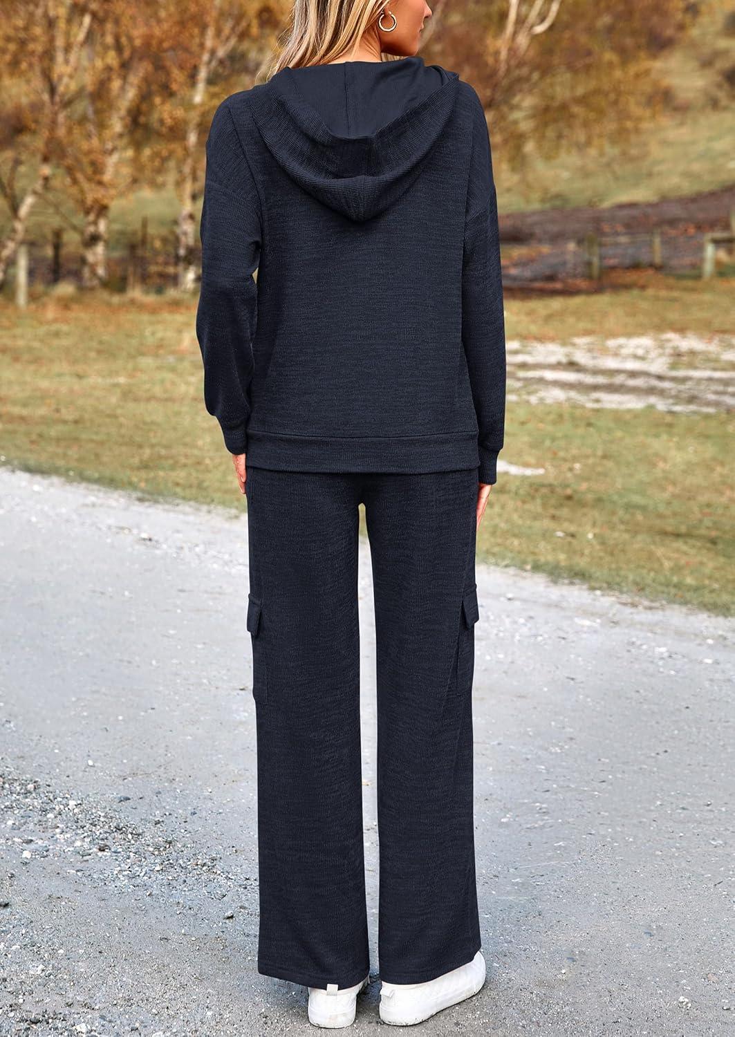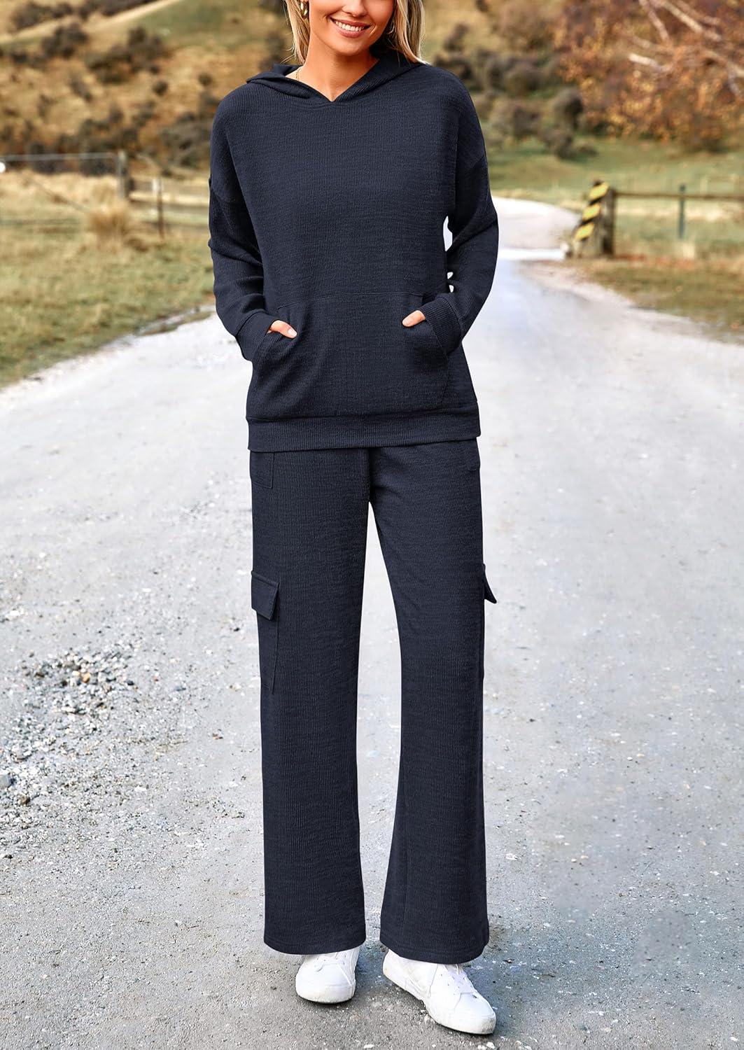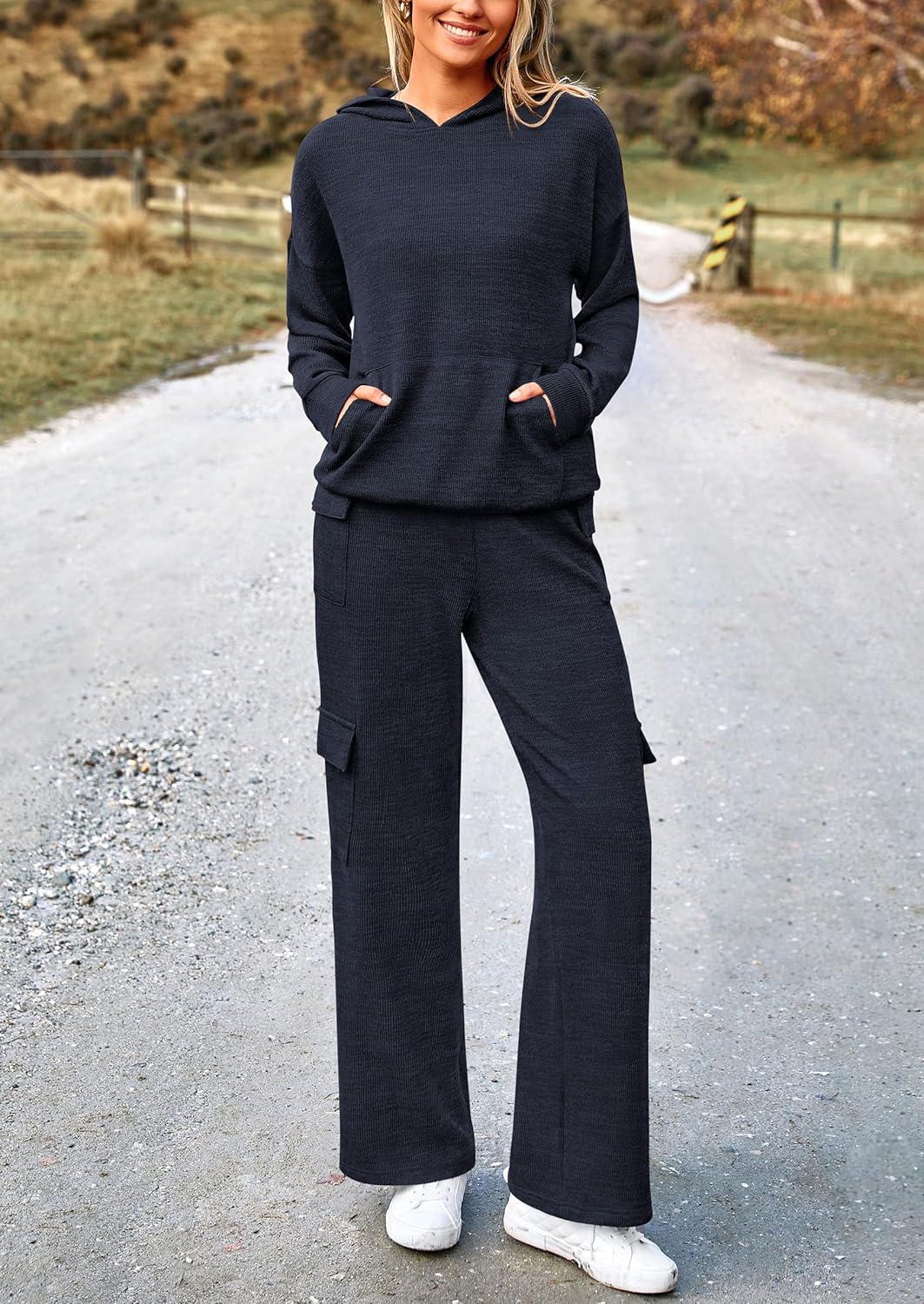 PRETTYGARDEN 2 Piece Sets for Women Fall 2025 Sweatsuits Outfits Lounge Matching Hoodie Set Travel Track Suits Winter Clothes(Navy)