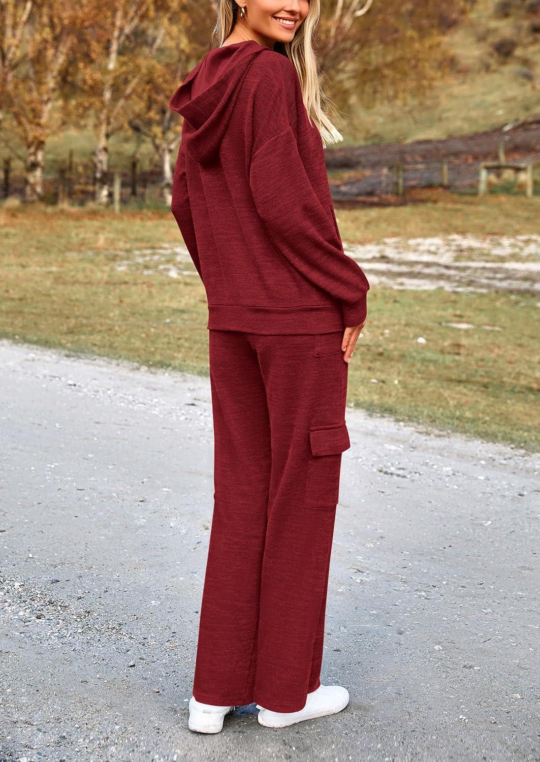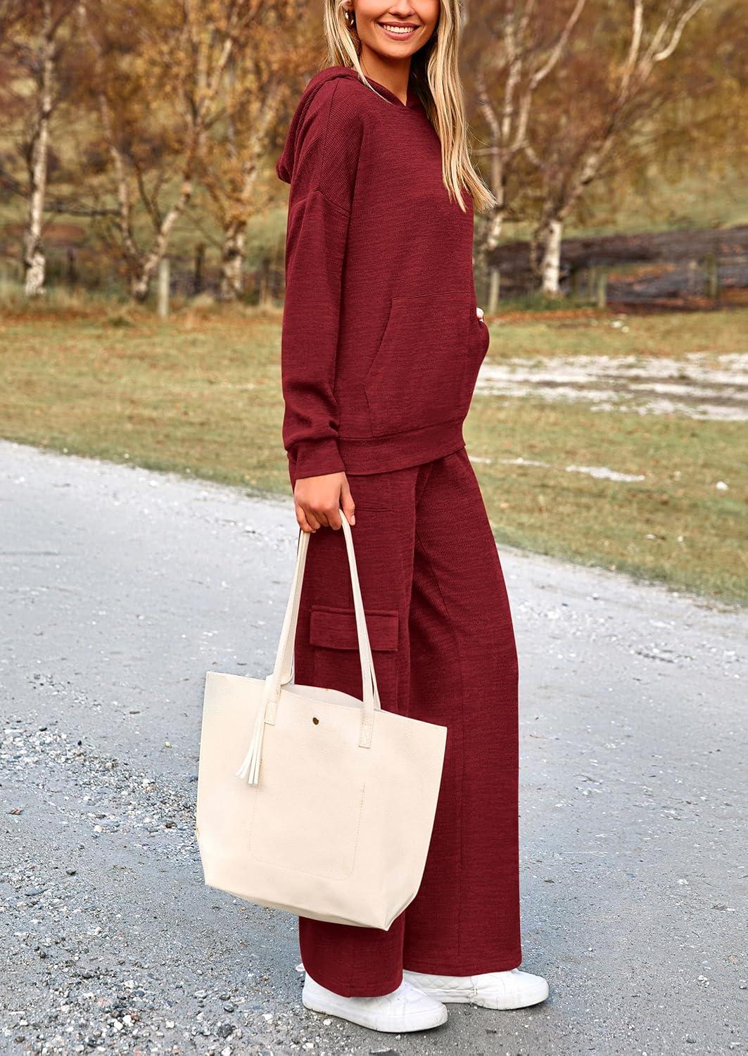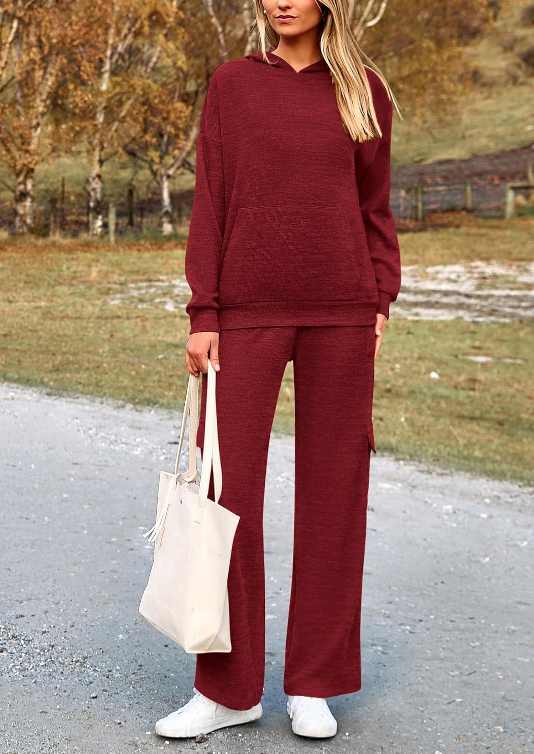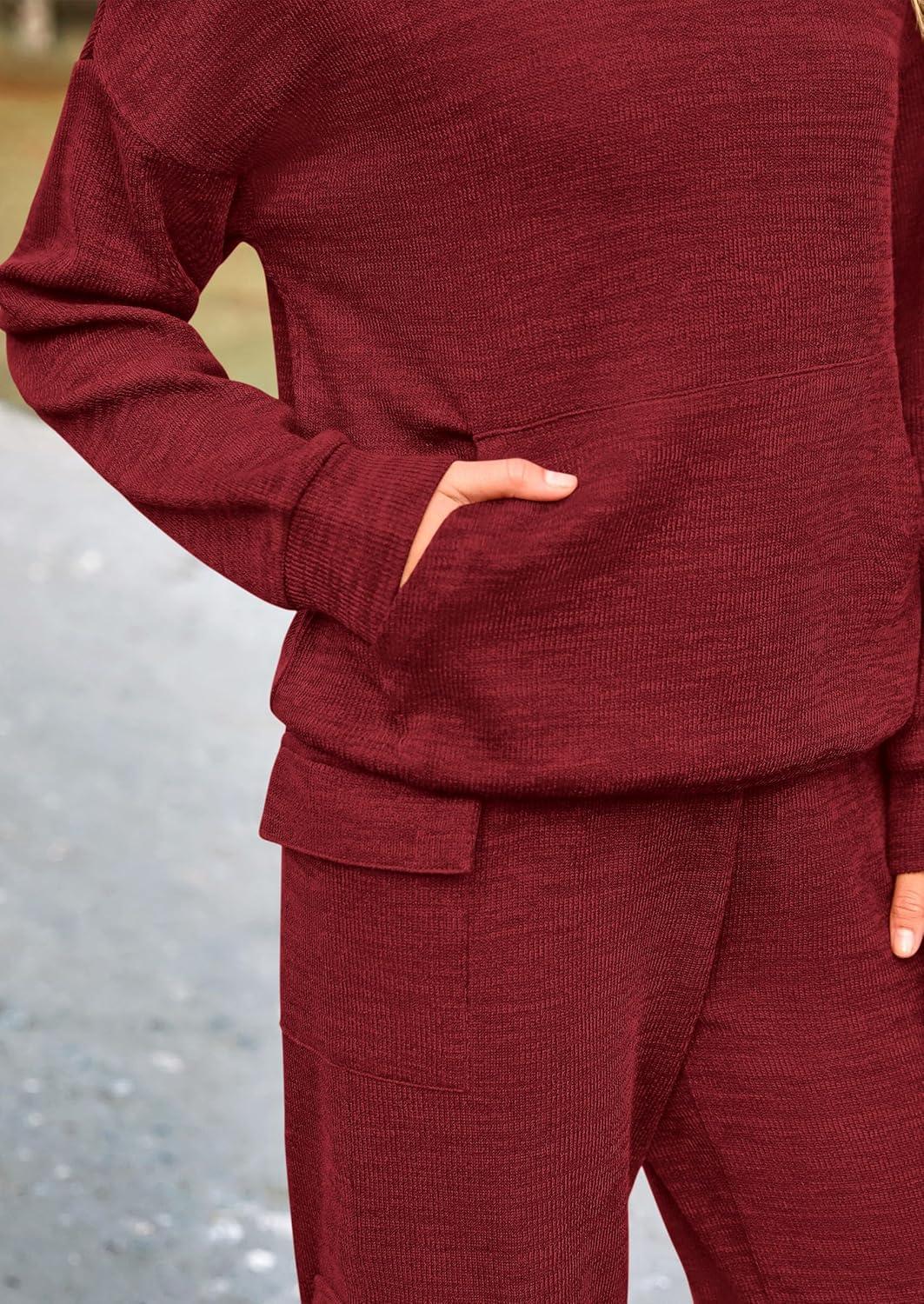 PRETTYGARDEN 2 Piece Sets for Women Fall 2025 Sweatsuits Outfits Lounge Matching Hoodie Set Travel Track Suits Winter Clothes(Wine Red)