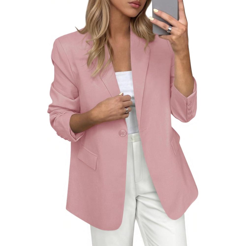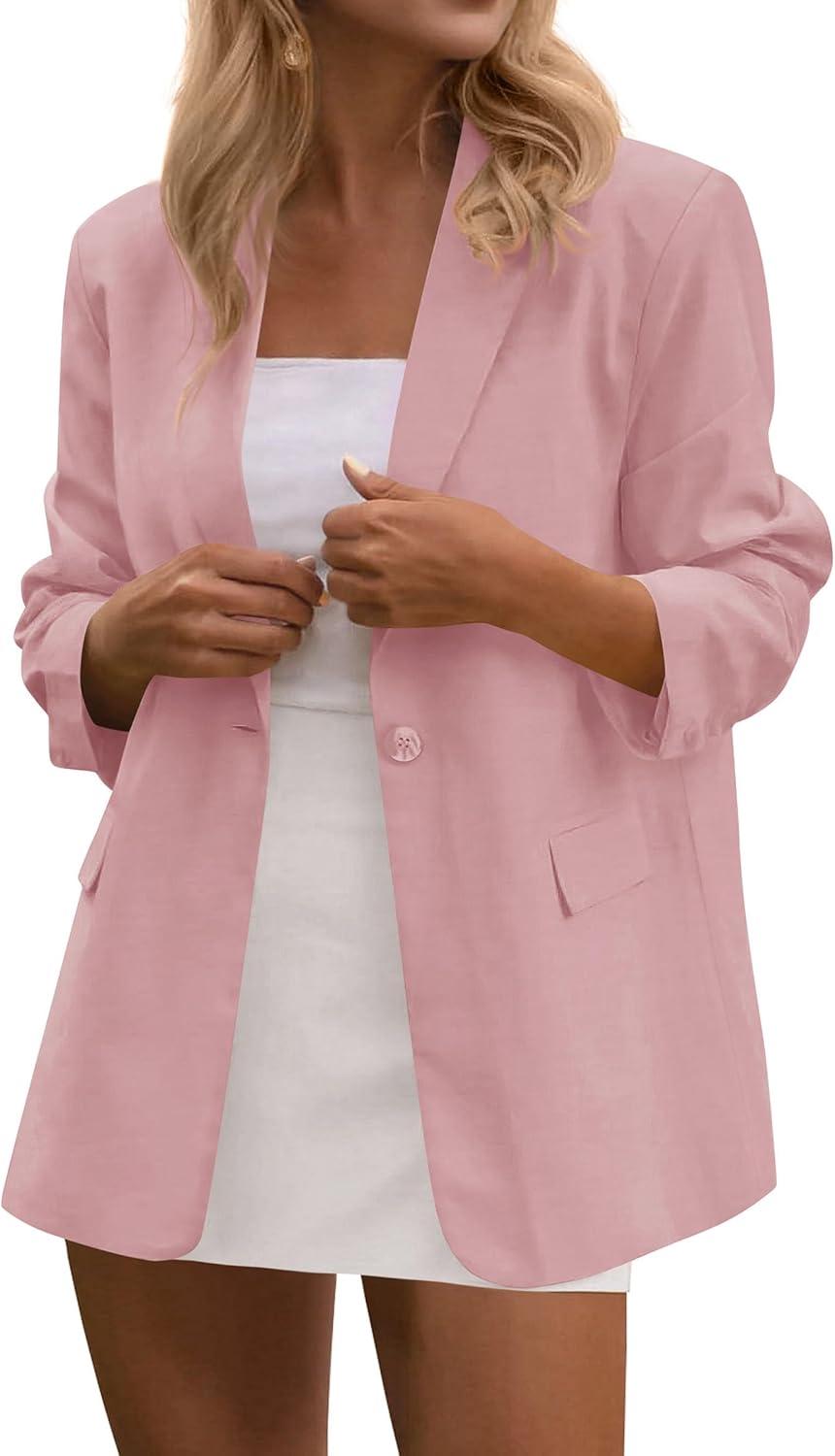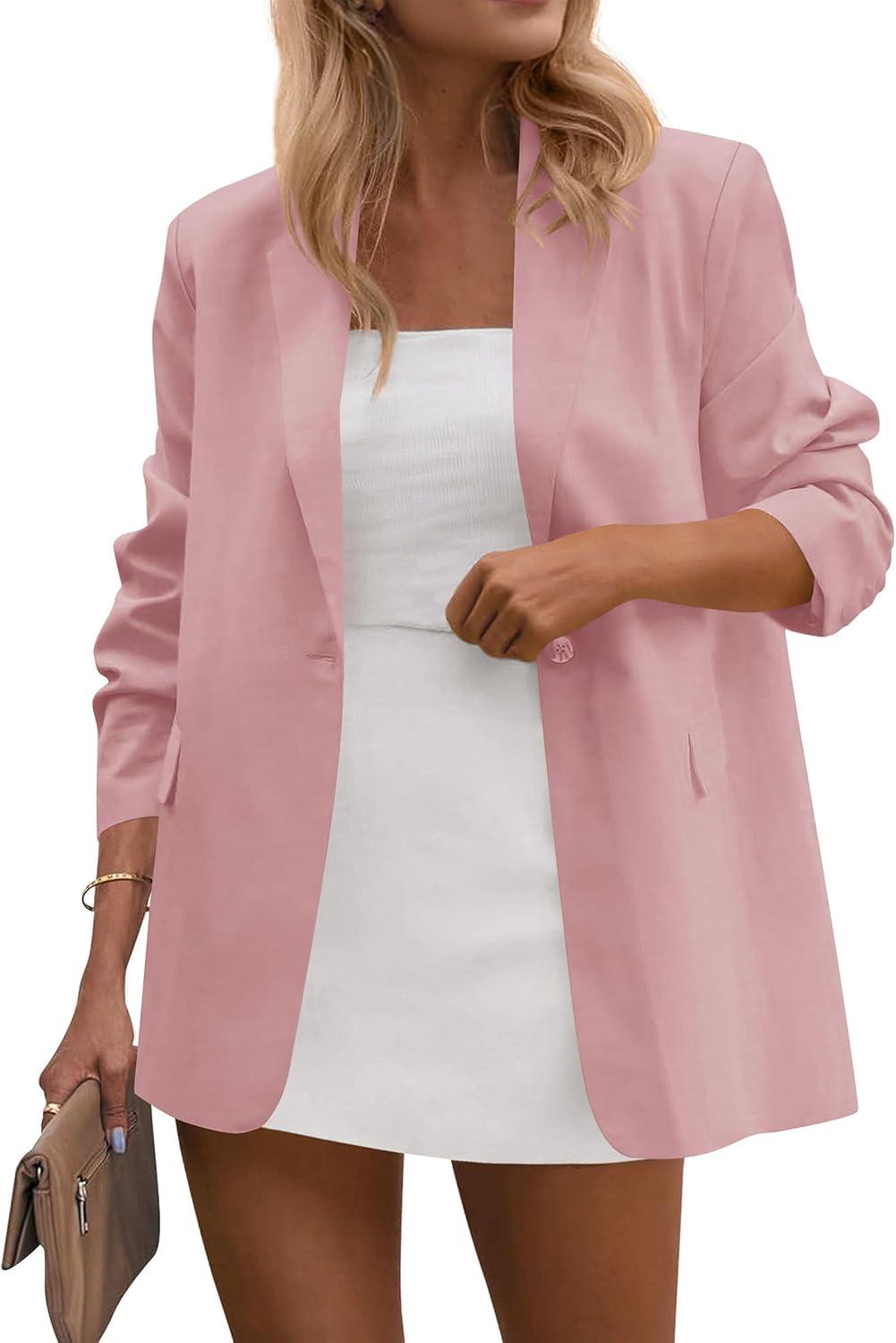PRETTYGARDEN Blazers for Women Business Casual Outfits 2025 Fall Fashion Open Front Long Sleeve Suit Jackets Work Blazer(Pink)