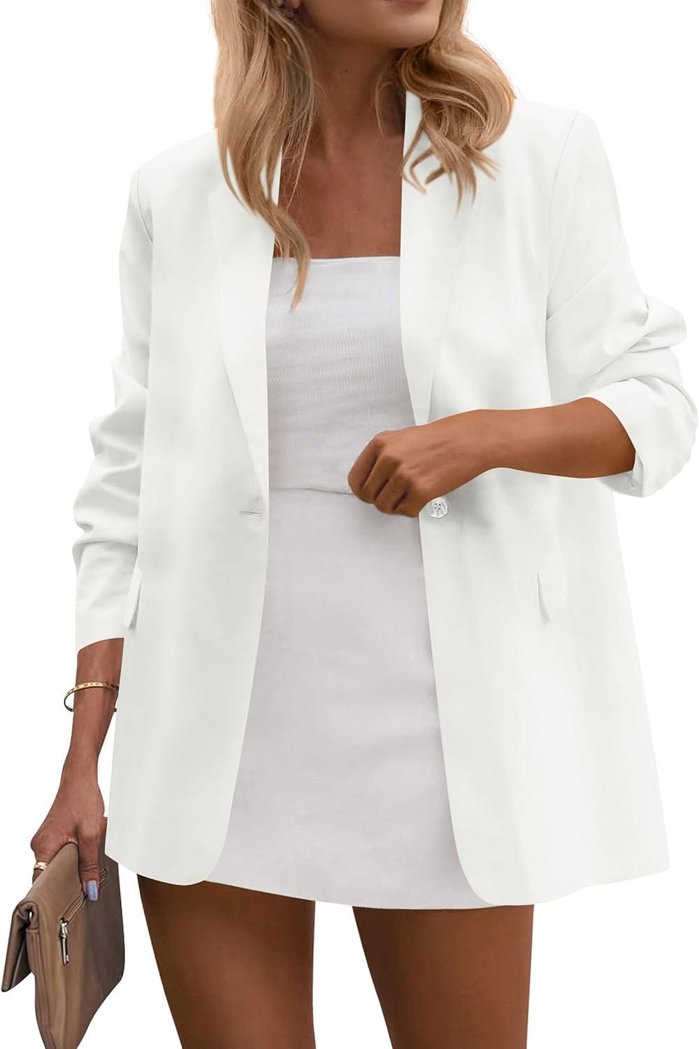 PRETTYGARDEN Blazers for Women Business Casual Outfits 2025 Fall Fashion Open Front Long Sleeve Suit Jackets Work Blazer(White)