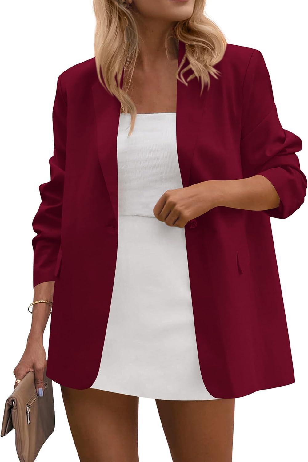 PRETTYGARDEN Blazers for Women Business Casual Outfits 2026 Spring Open Front Long Sleeve Suit Jackets Office Work Blazer(Wine Red)