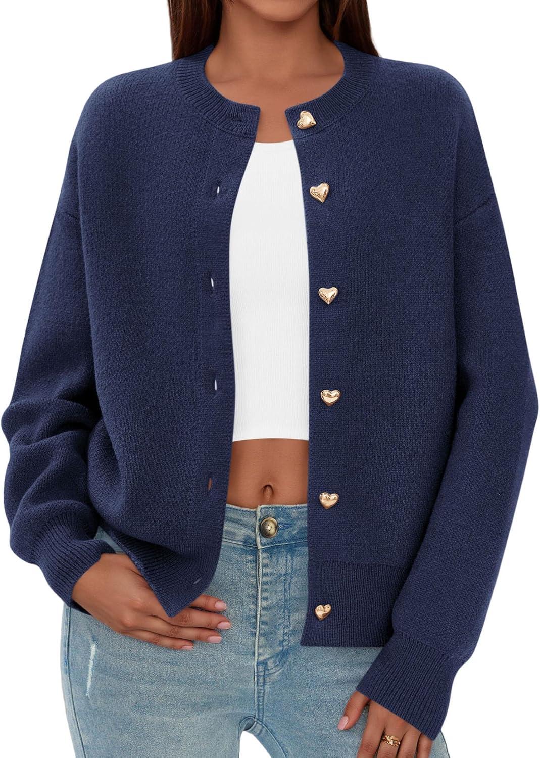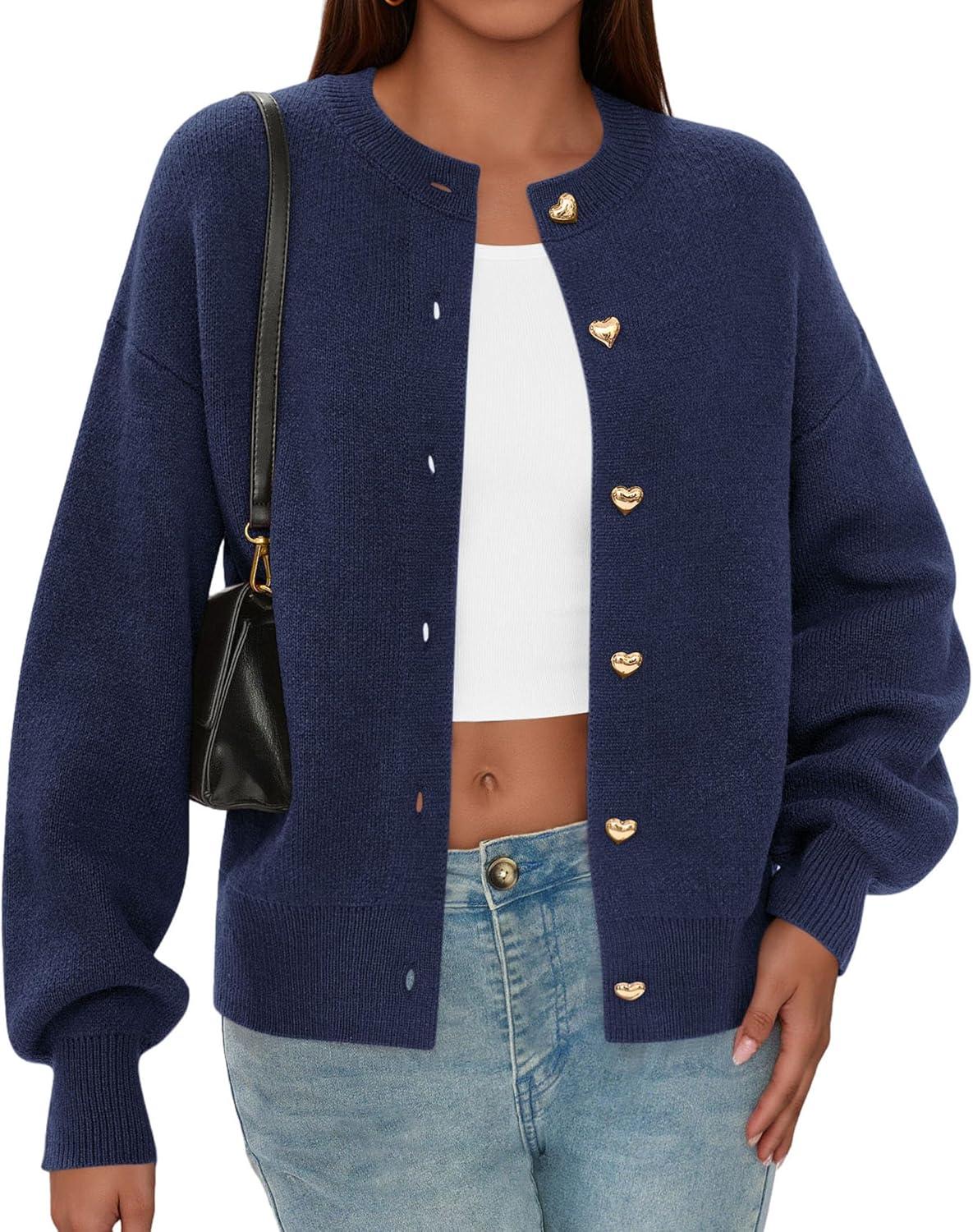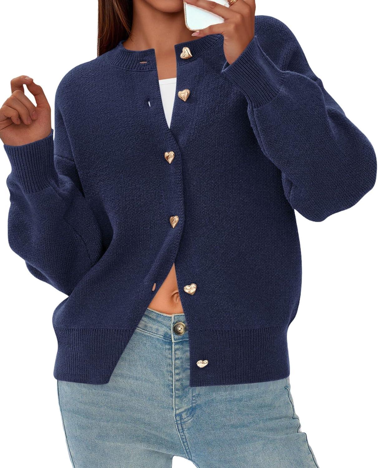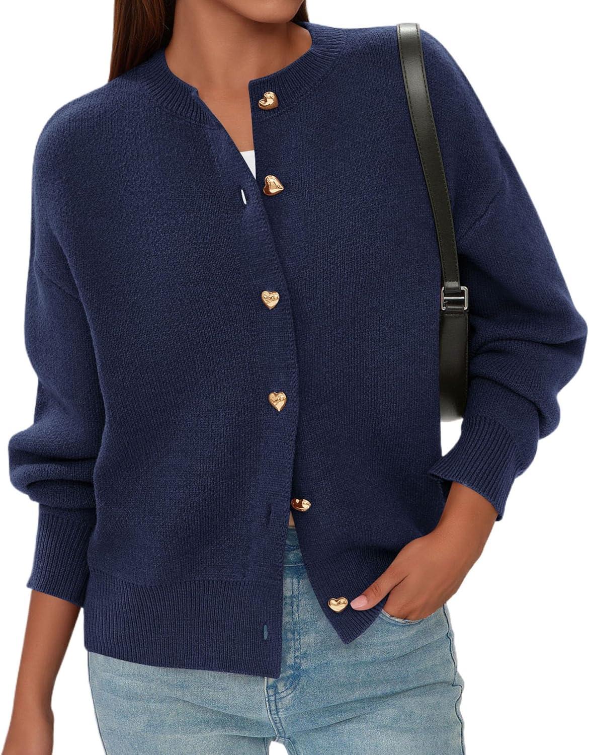 PRETTYGARDEN Cardigan for Women 2025 Fall Fashion Long Sleeve Trendy Button Down Work Office Sweaters Cute Winter Jacket(Navy)