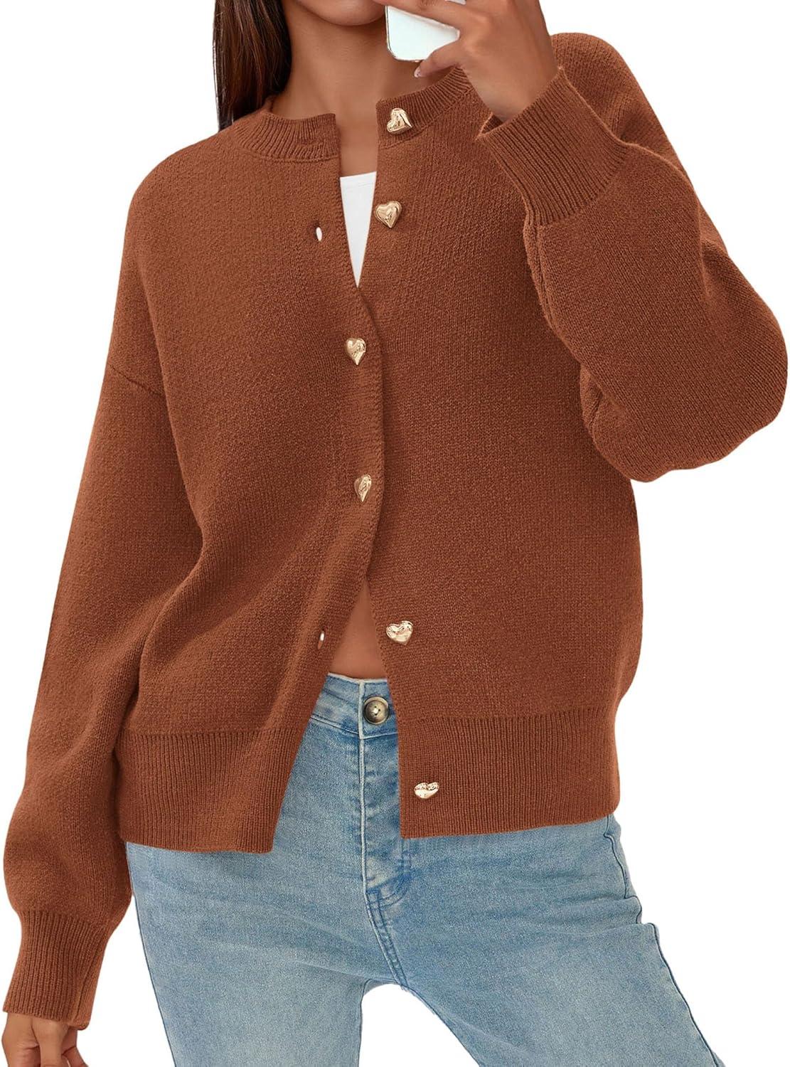 PRETTYGARDEN Cardigan for Women 2025 Fall Fashion Long Sleeve Trendy Button Down Work Office Sweaters Cute Winter Jacket(Red Brown)