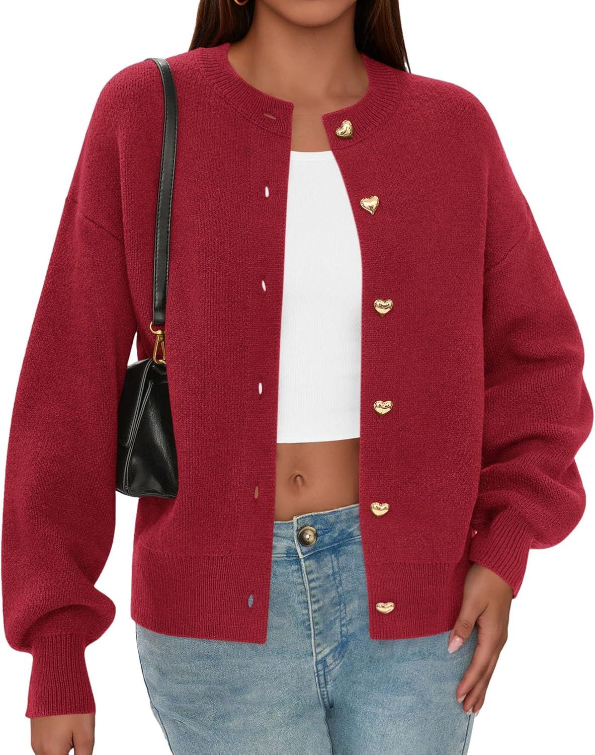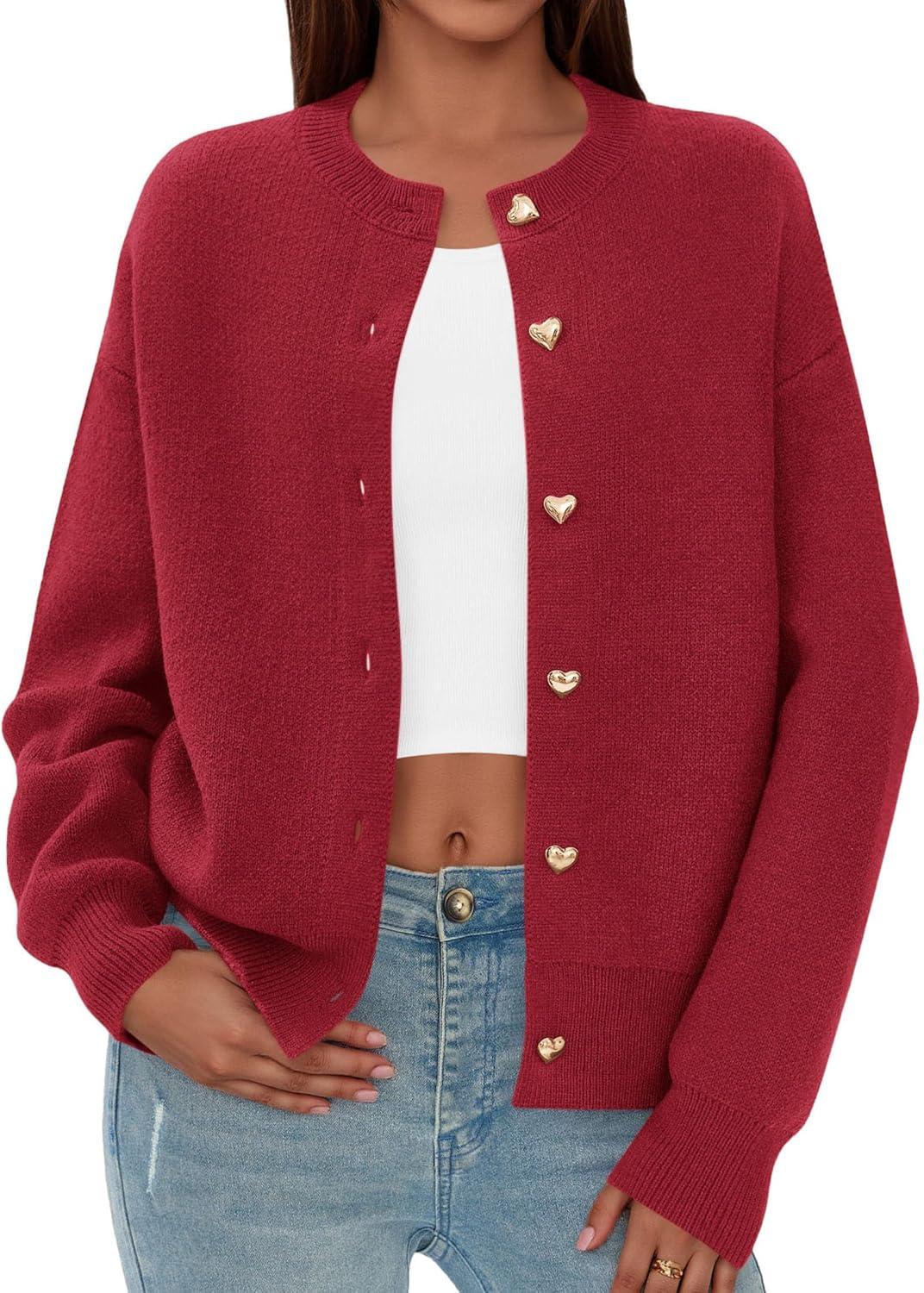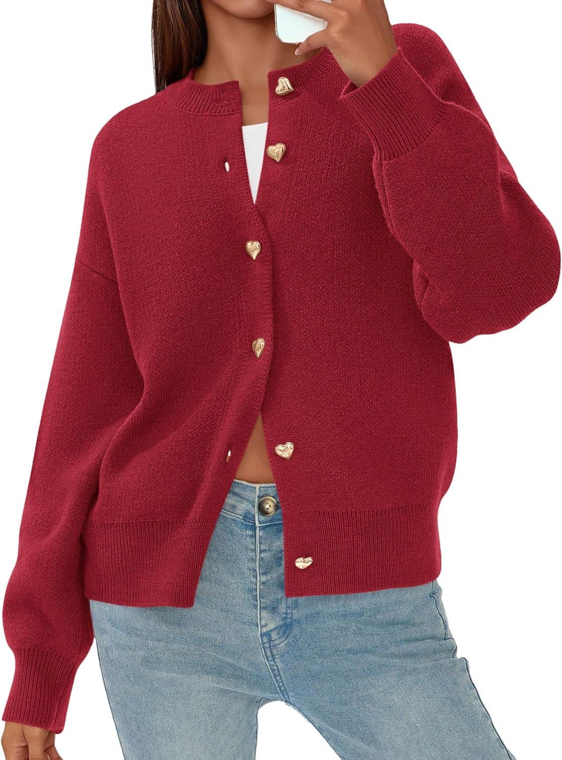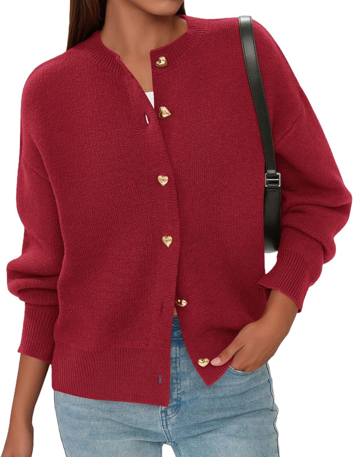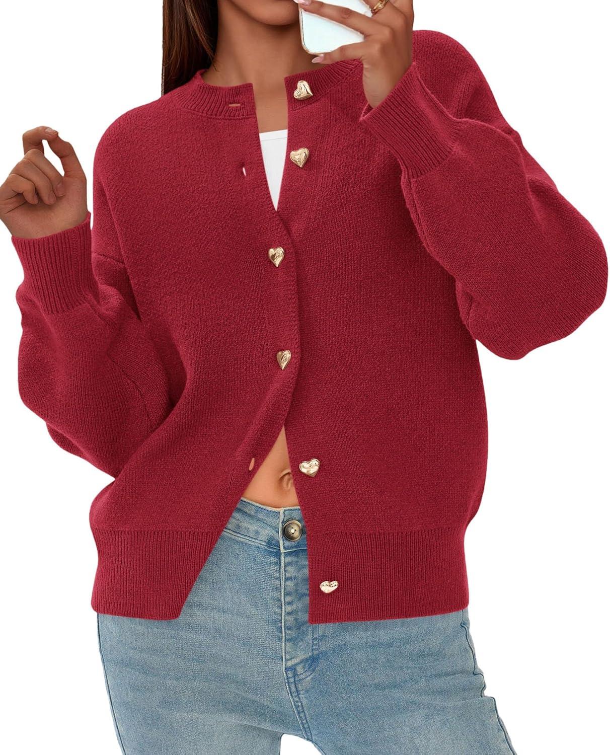 PRETTYGARDEN Cardigan for Women 2025 Fall Fashion Long Sleeve Trendy Button Down Work Office Sweaters Cute Winter Jacket(Red)