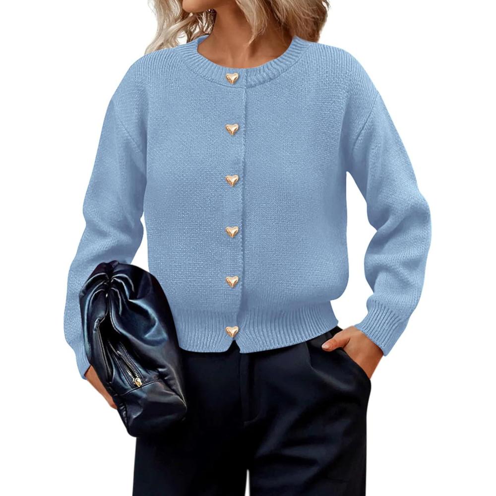 PRETTYGARDEN Cardigan Sweaters for Women Trendy Long Sleeve Open Front Button Down Jacket 2025 Fall Clothes Winter Coats(Light Blue)