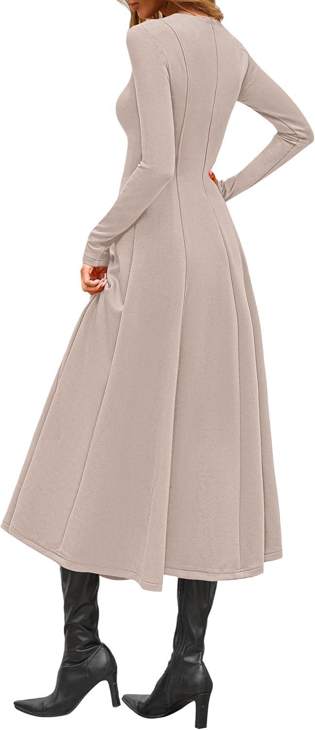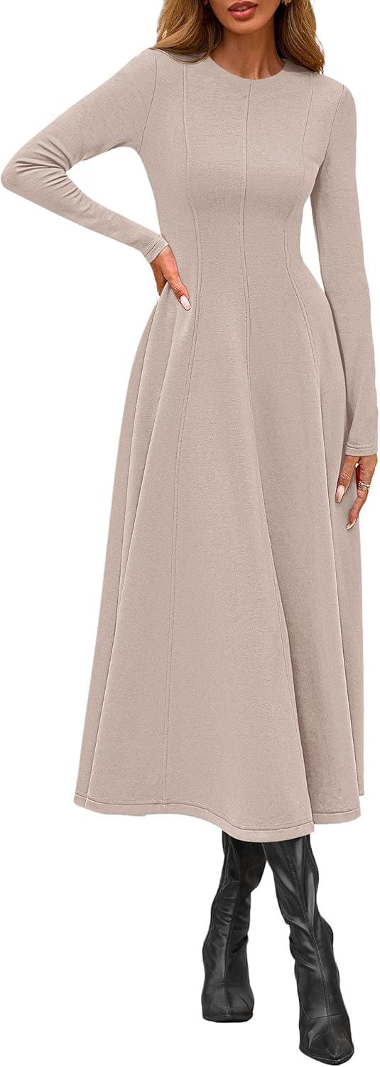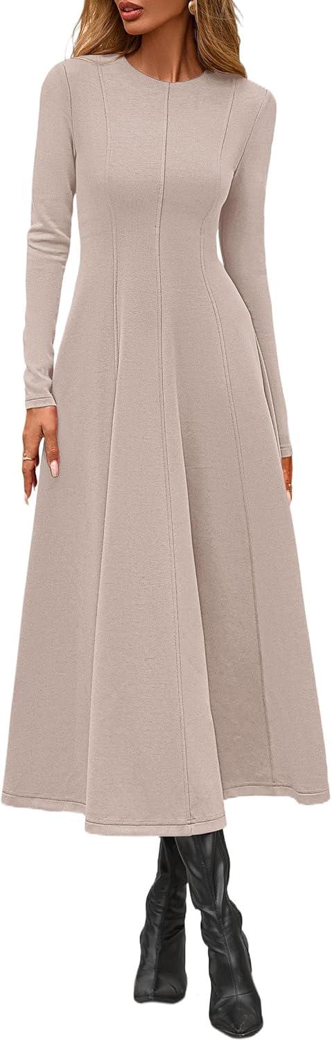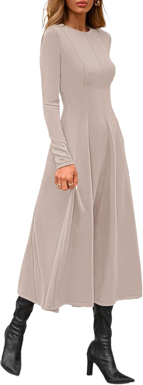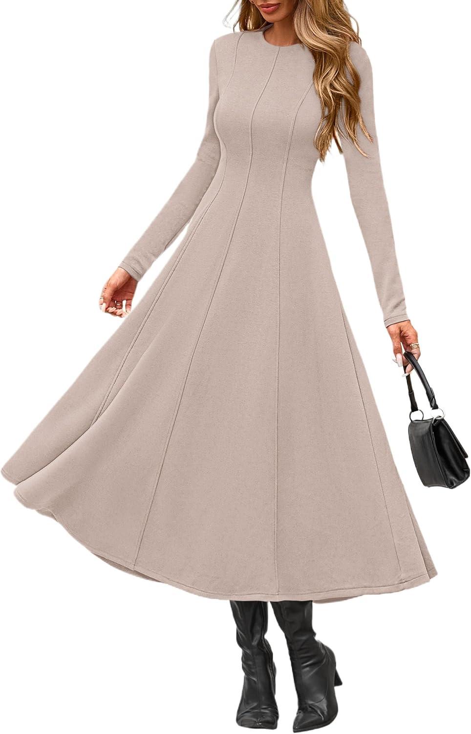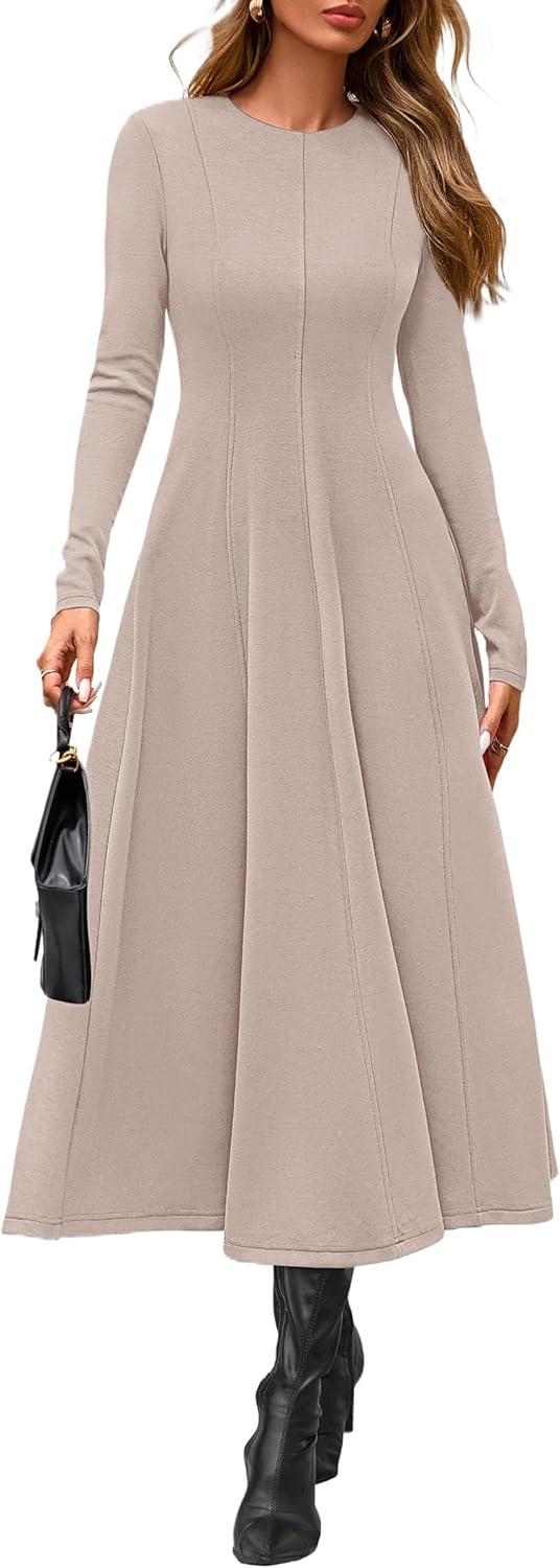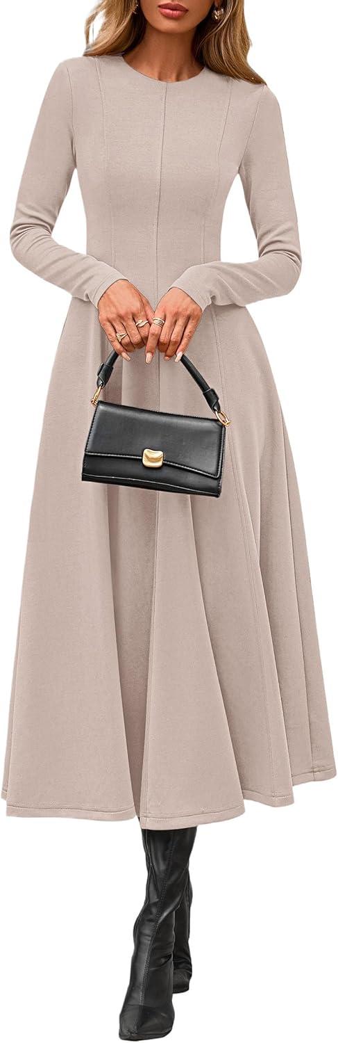 PRETTYGARDEN Cocktail Dresses for Women 2025 Elegant Classy Fall Long Sleeve Midi A Line Flowy Modest Winter Party Dress(Apricot)
