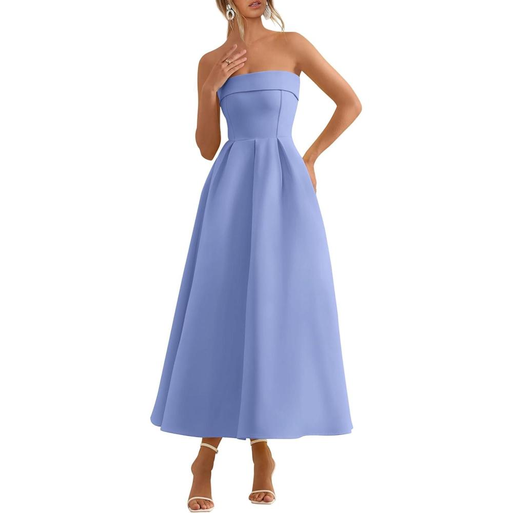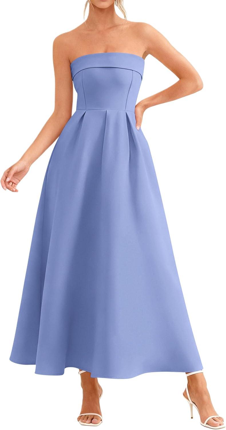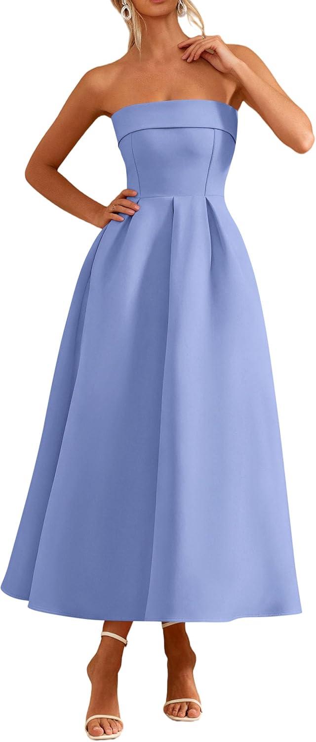 PRETTYGARDEN Cocktail Dresses for Women 2026 Summer Formal Elegant Tube Top Strapless Spring Wedding Guest Party Midi Dress(Light Blue)