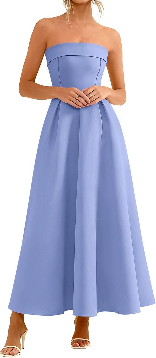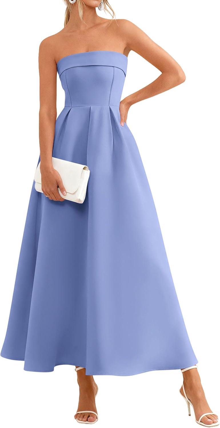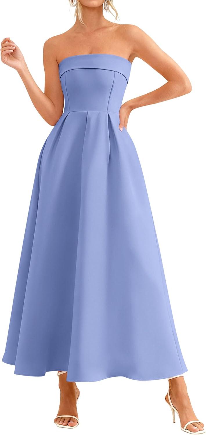 PRETTYGARDEN Cocktail Dresses for Women 2026 Summer Formal Elegant Tube Top Strapless Spring Wedding Guest Party Midi Dress(Light Blue)