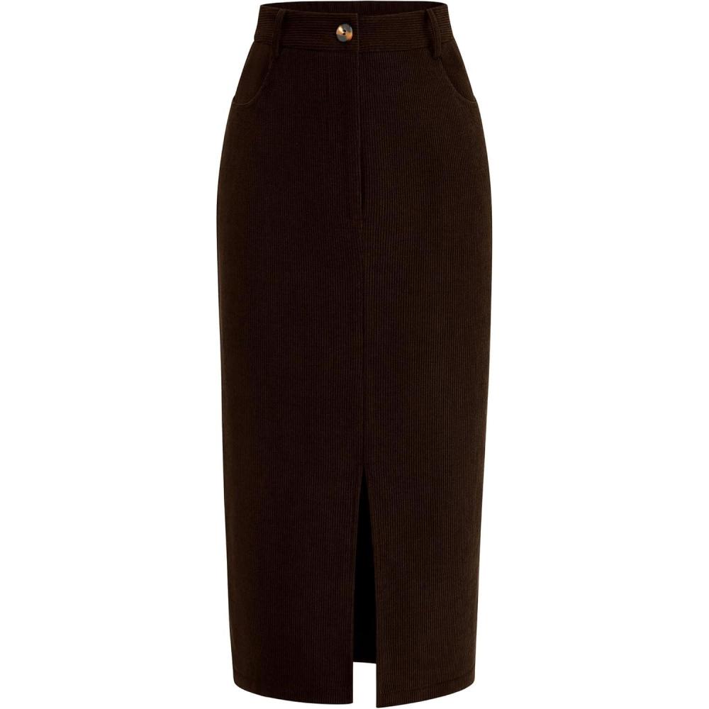 imagePRETTYGARDEN Corduroy Skirt Women Fall Fashion 2025 High Waisted Pencil Midi Skirts Business Casual Work Office Winter OutfitCoffee