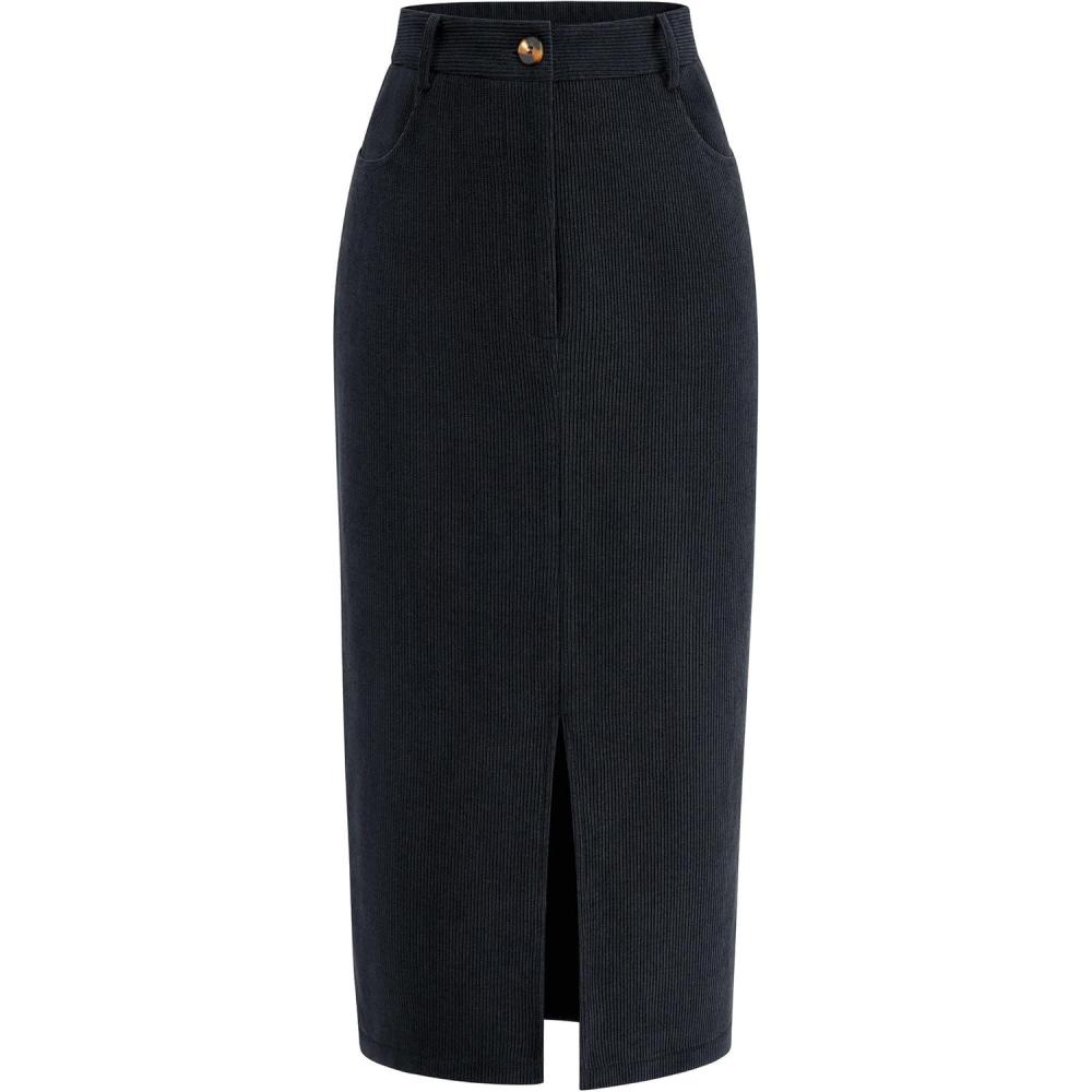imagePRETTYGARDEN Corduroy Skirt Women Fall Fashion 2025 High Waisted Pencil Midi Skirts Business Casual Work Office Winter OutfitDark Grey