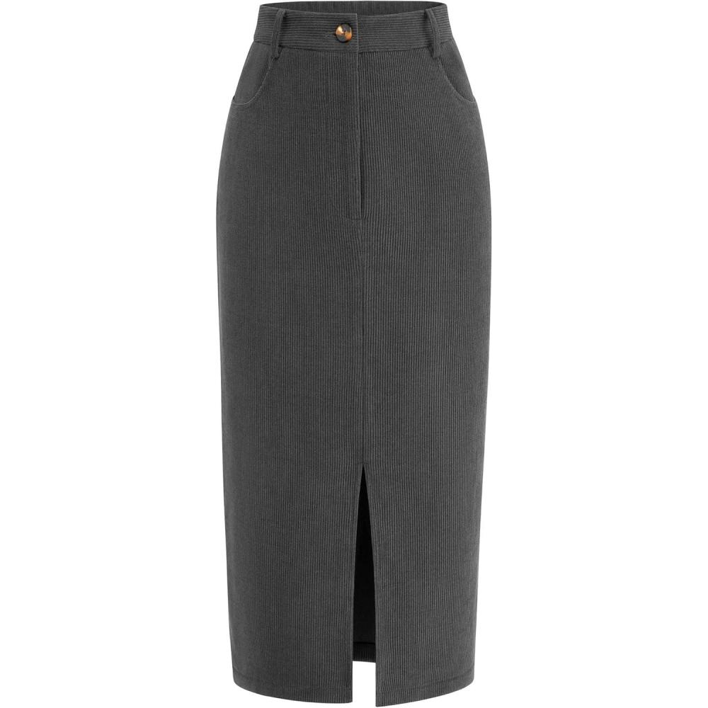 PRETTYGARDEN Corduroy Skirt Women Fall Fashion 2025 High Waisted Pencil Midi Skirts Business Casual Work Office Winter Outfit(Grey)