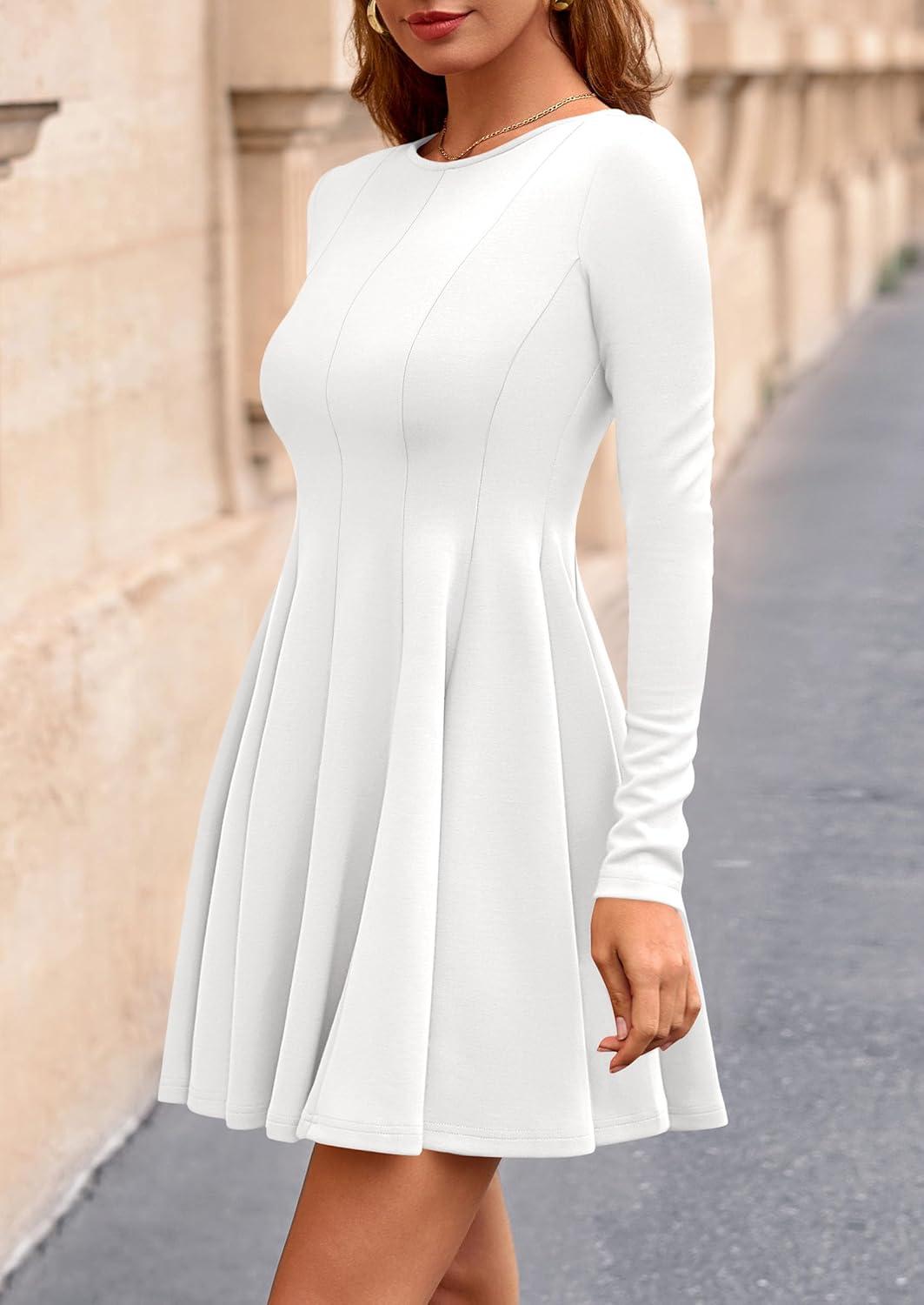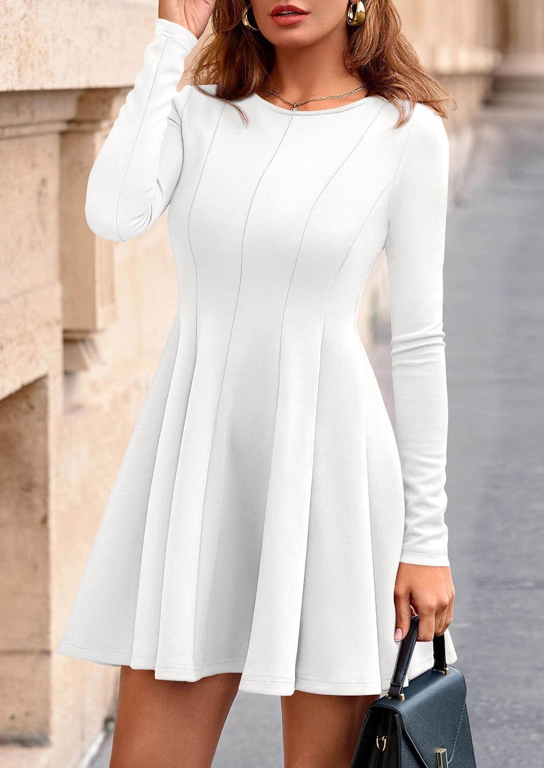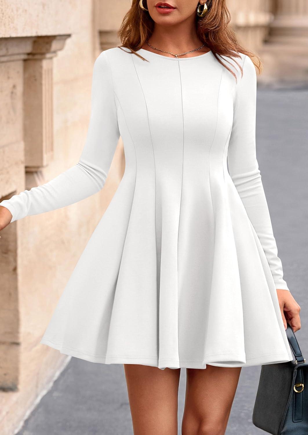 PRETTYGARDEN Fall Cocktail Dresses for Women Elegant Classy Wedding Guest 2025 Long Sleeve Homecoming Party A Line Mini Dress(White)