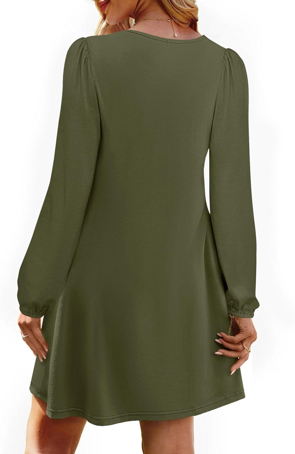 PRETTYGARDEN Fall Dresses for Women 2025 Long Sleeve Mini Short Flowy A Line Casual Holiday Party Tunic Dress Fashion Clothes(Army Green)