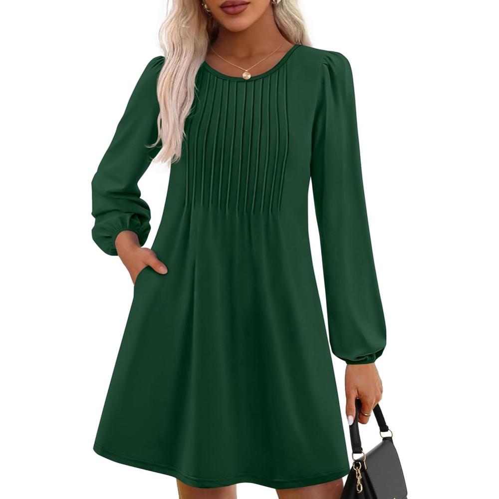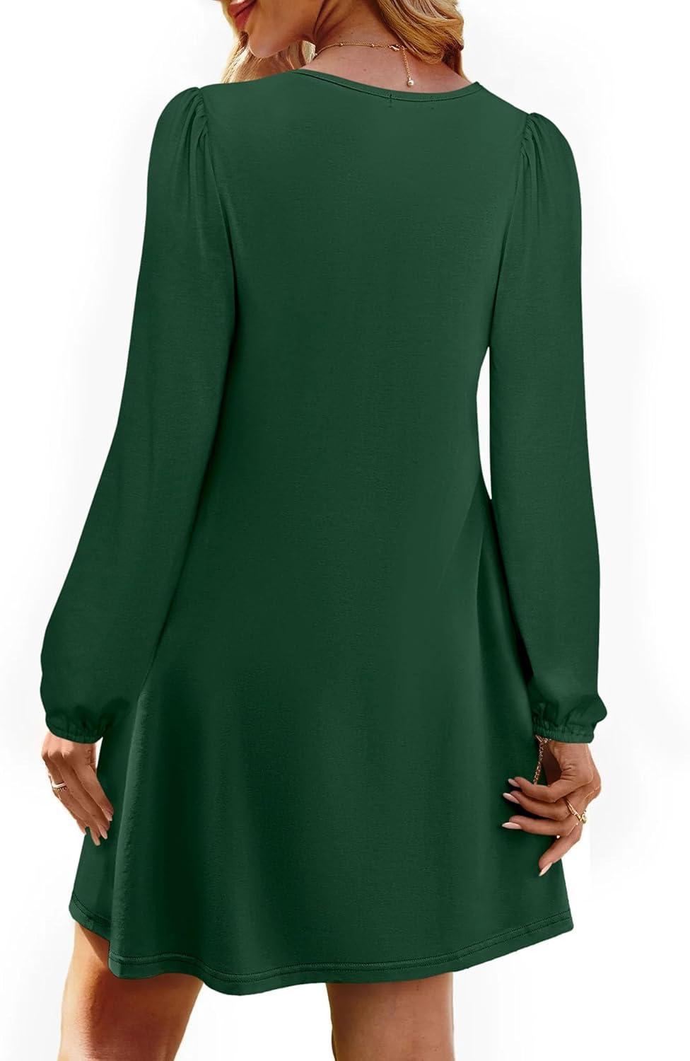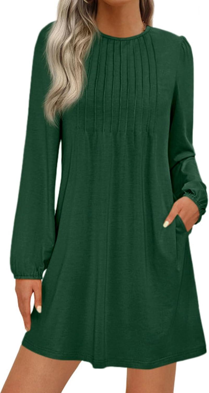 PRETTYGARDEN Fall Dresses for Women 2025 Long Sleeve Mini Short Flowy A Line Casual Holiday Party Tunic Dress Fashion Clothes(Dark Green)