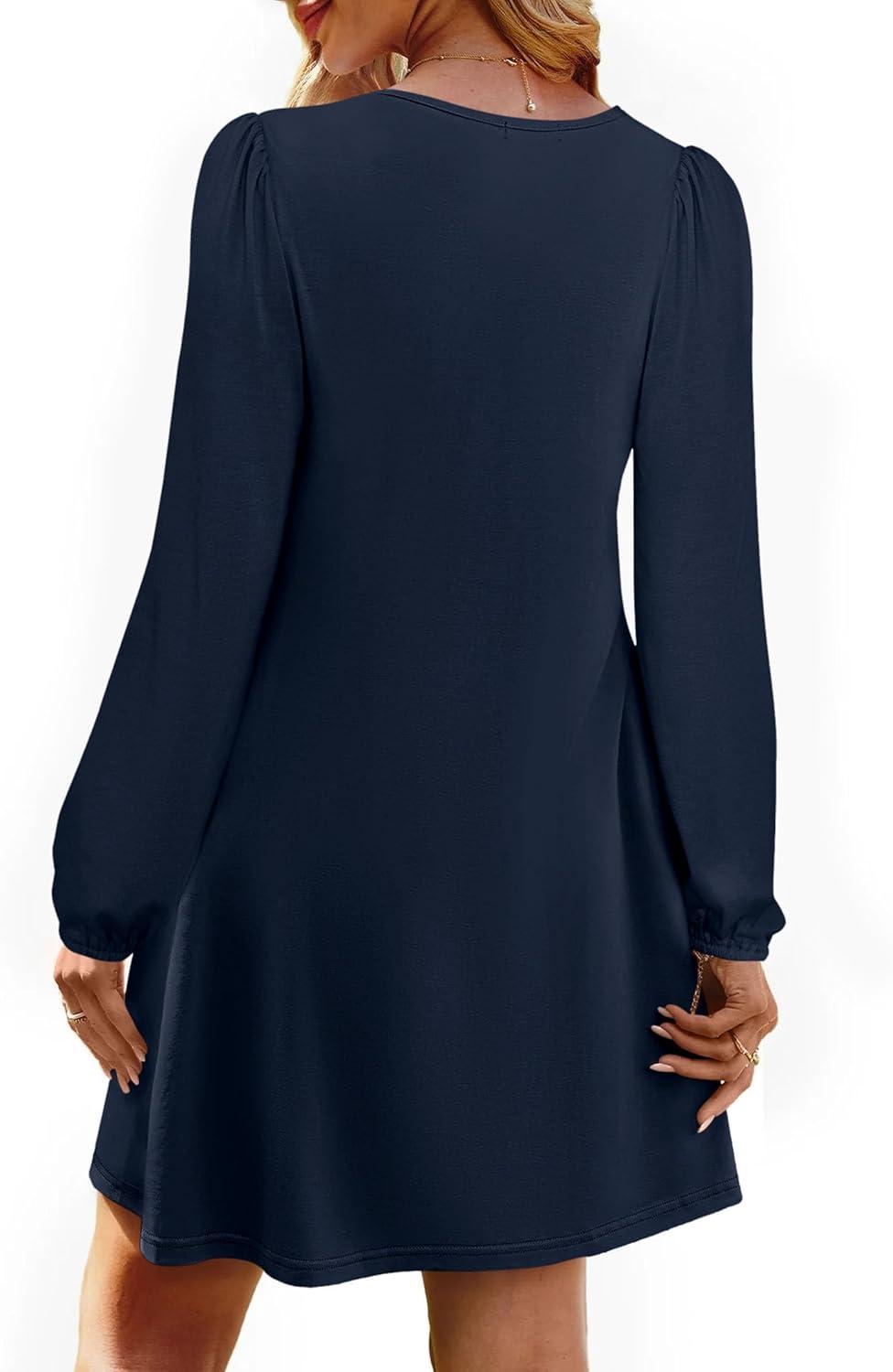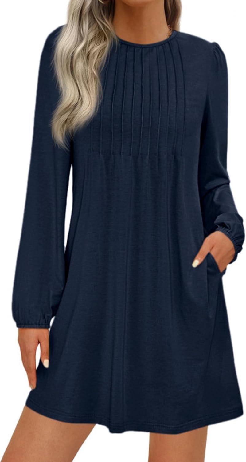 PRETTYGARDEN Fall Dresses for Women 2025 Long Sleeve Mini Short Flowy A Line Casual Holiday Party Tunic Dress Fashion Clothes(Navy Blue)