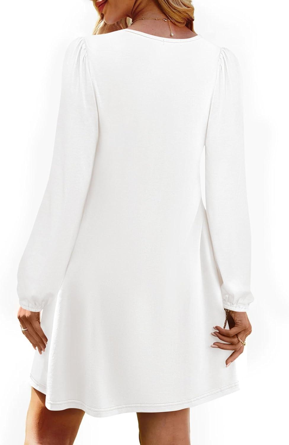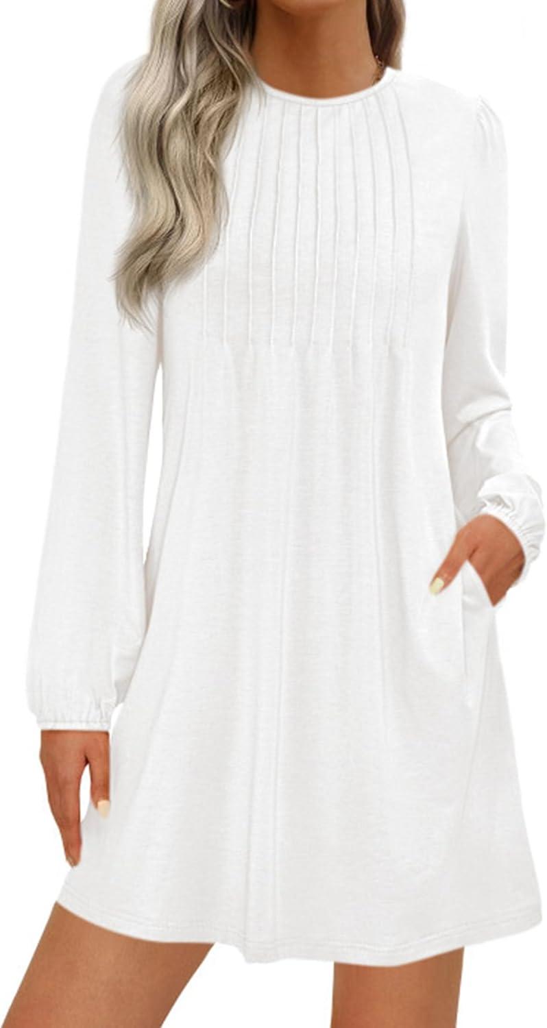 PRETTYGARDEN Fall Dresses for Women 2025 Long Sleeve Mini Short Flowy A Line Casual Holiday Party Tunic Dress Fashion Clothes(White)