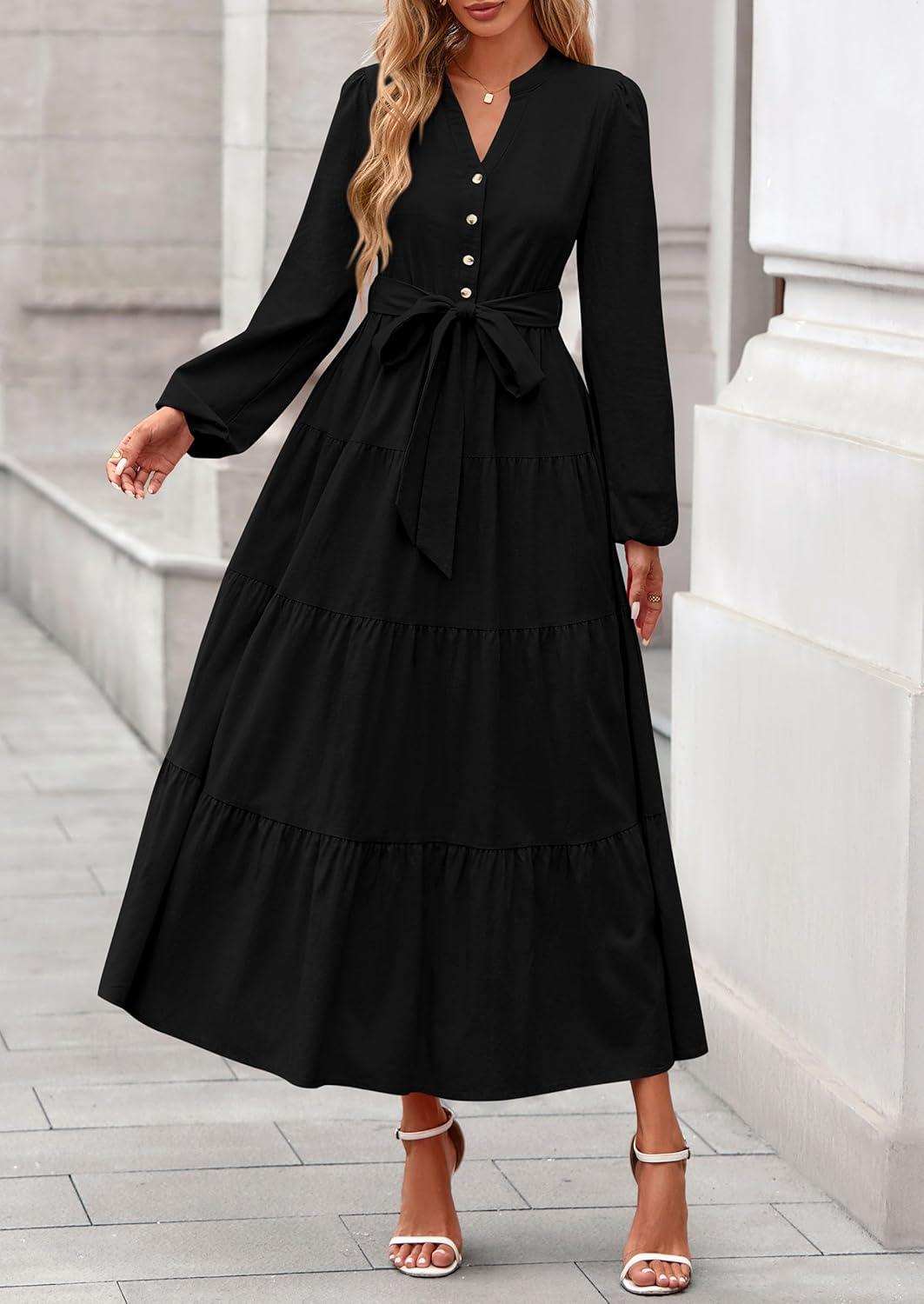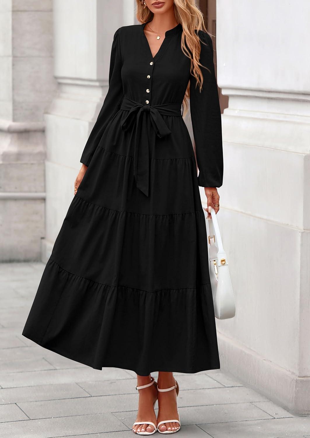 Save big on PRETTYGARDEN Fall Dresses for Women 2025 Long Sleeve V Neck Belted Ruffle A Line Flowy Boho Maxi Wedding Guest Dress Pockets(Black) and accessories during our BOGO sale. Buy one, get one 50% off!