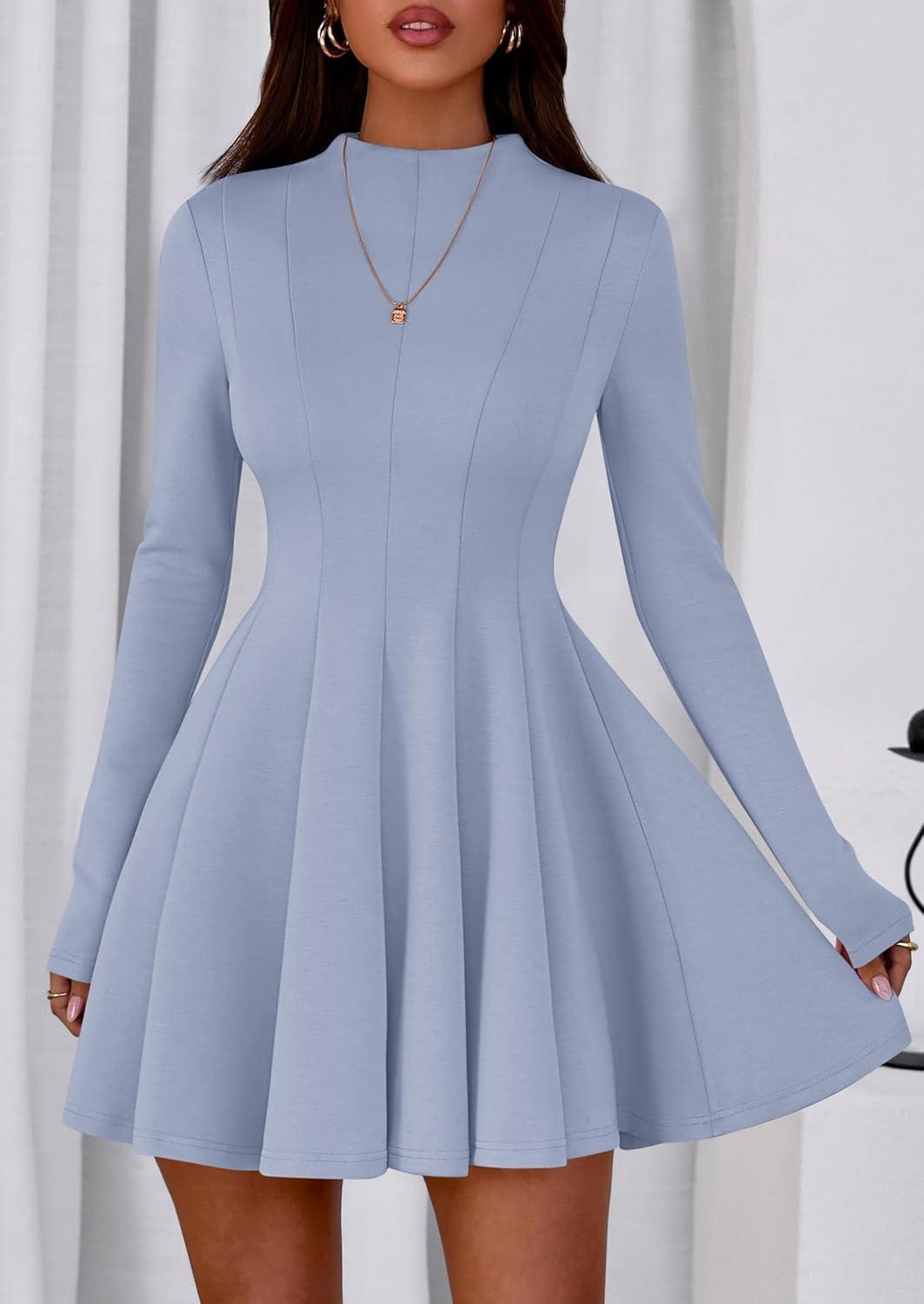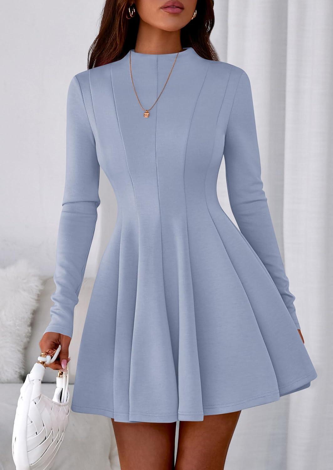 PRETTYGARDEN Fall Dresses for Women Elegant Classy 2025 Casual Long Sleeve Swing A Line Ruffle Short Homecoming Party Dress(Light Blue)