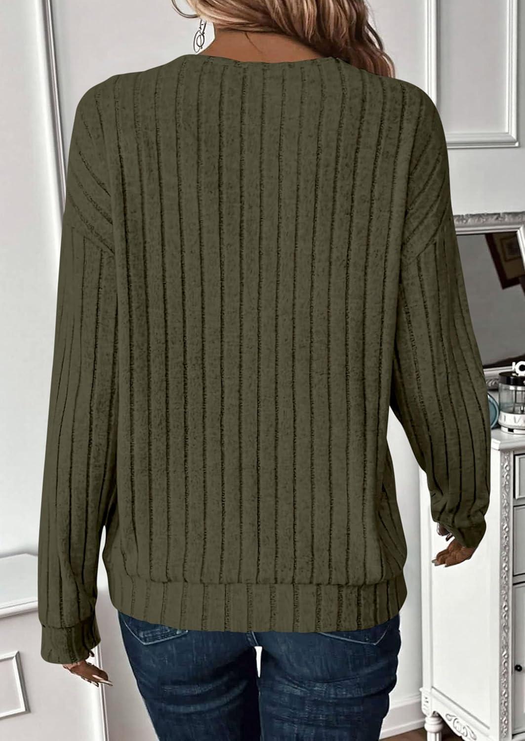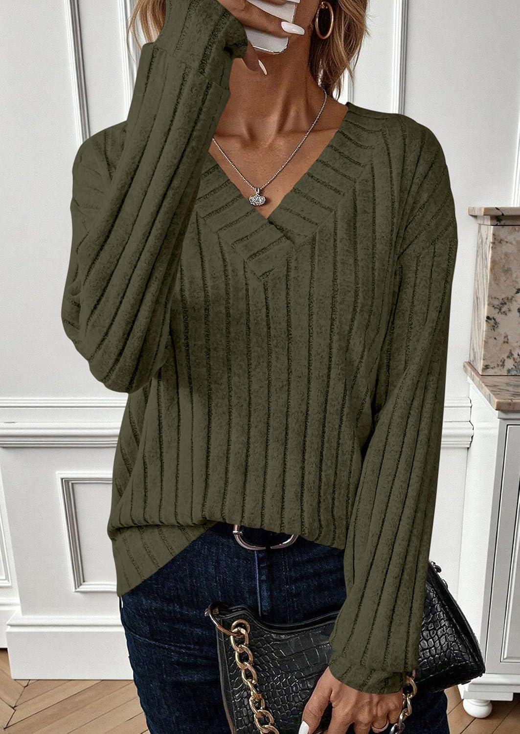PRETTYGARDEN Fall Fashion 2025 Long Sleeve Shirts for Women Ribbed Knit V Neck Dressy Casual Lightweight Sweaters Tunic Tops(Army Green)