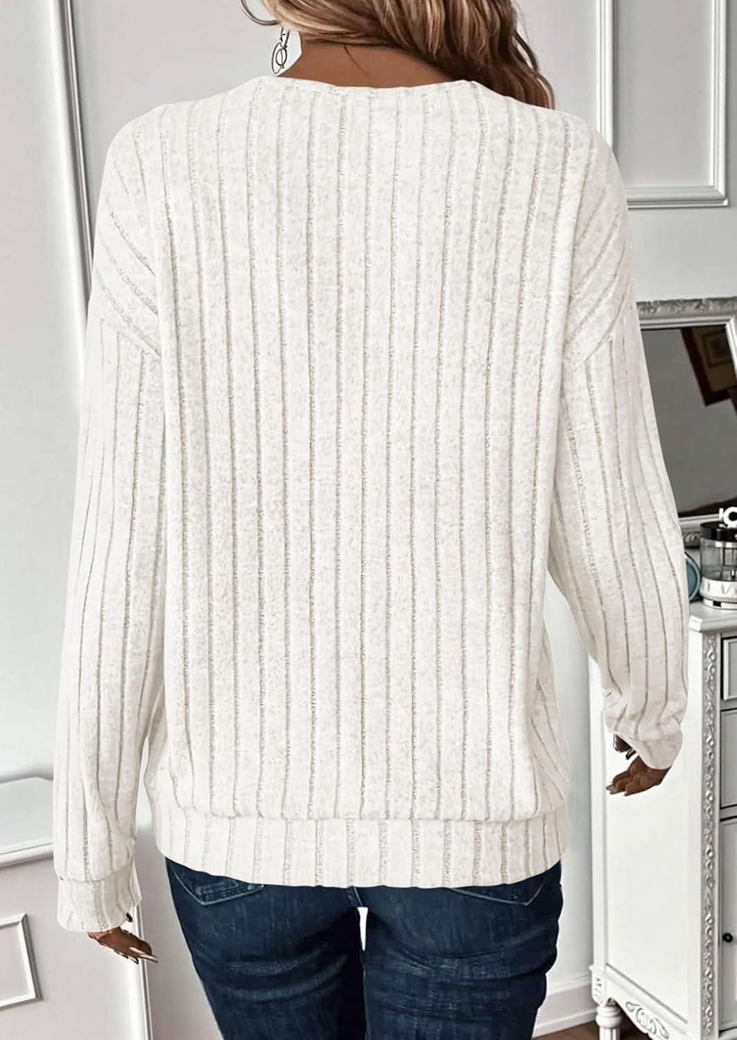 PRETTYGARDEN Fall Fashion 2025 Long Sleeve Shirts for Women Ribbed Knit V Neck Dressy Casual Lightweight Sweaters Tunic Tops(White)