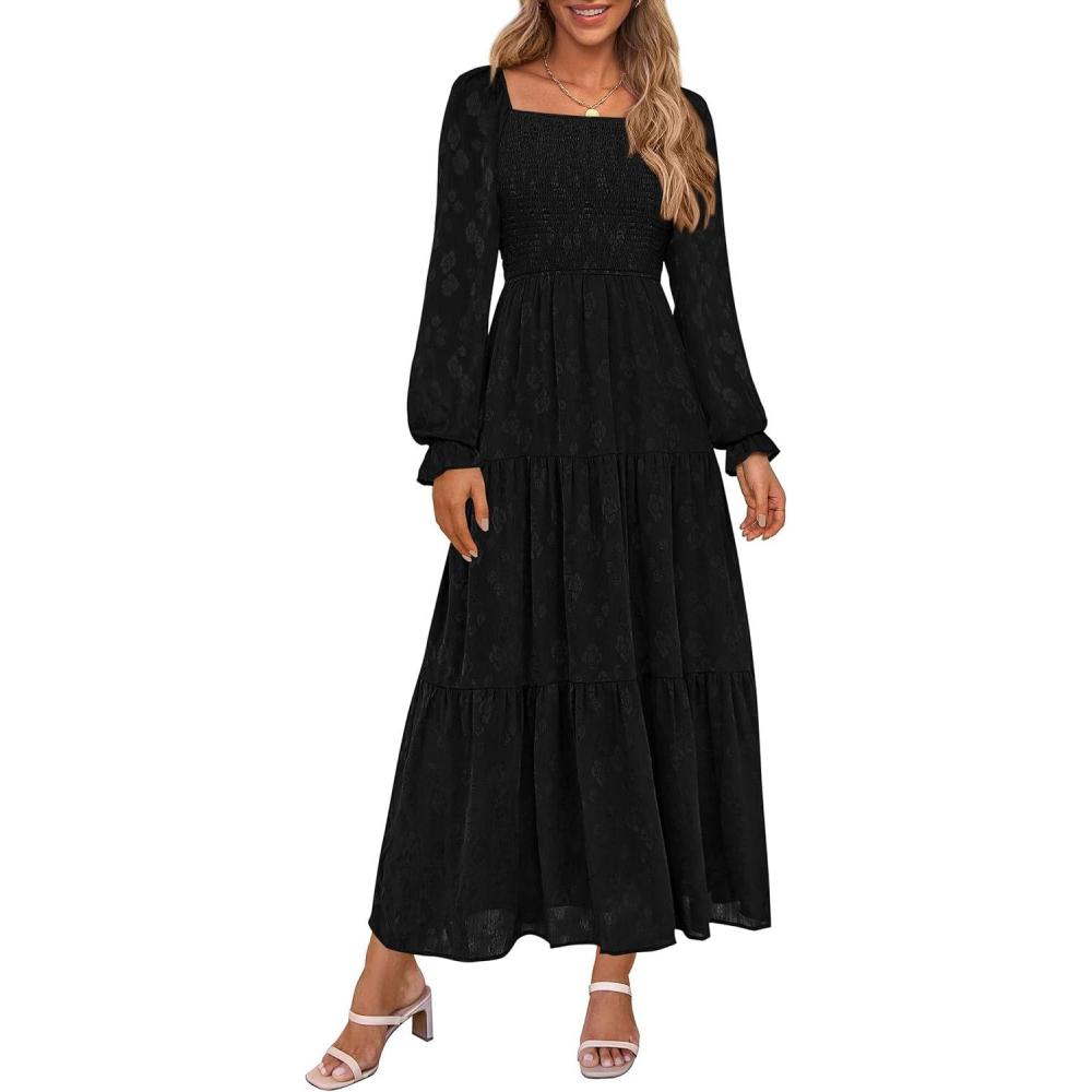 Be the first to review “PRETTYGARDEN Fall Wedding Guest Dresses for Women 2025 Floral Long Sleeve Smocked Tiered Elegant Long Flowy Boho Dress(Black)”