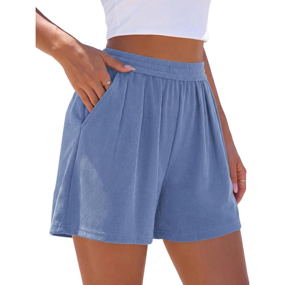 PRETTYGARDEN Flowy Summer Shorts for Women High Waisted Wide Leg Knitted Wide Leg Soft Pajama Shorts Women Vacation Outfits(Grey Blue)