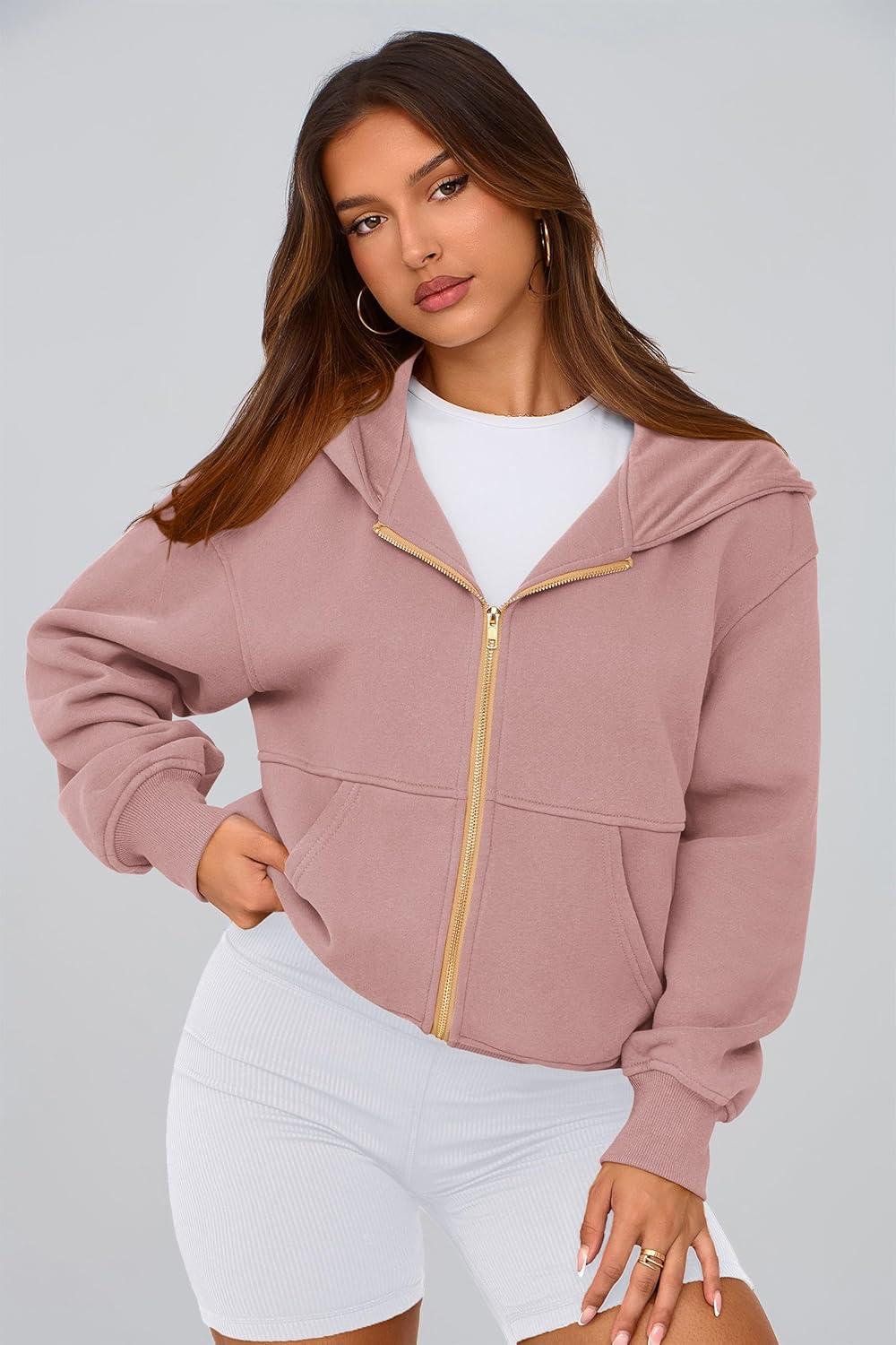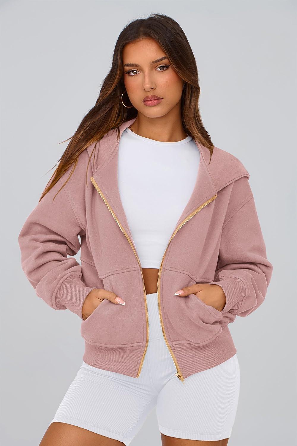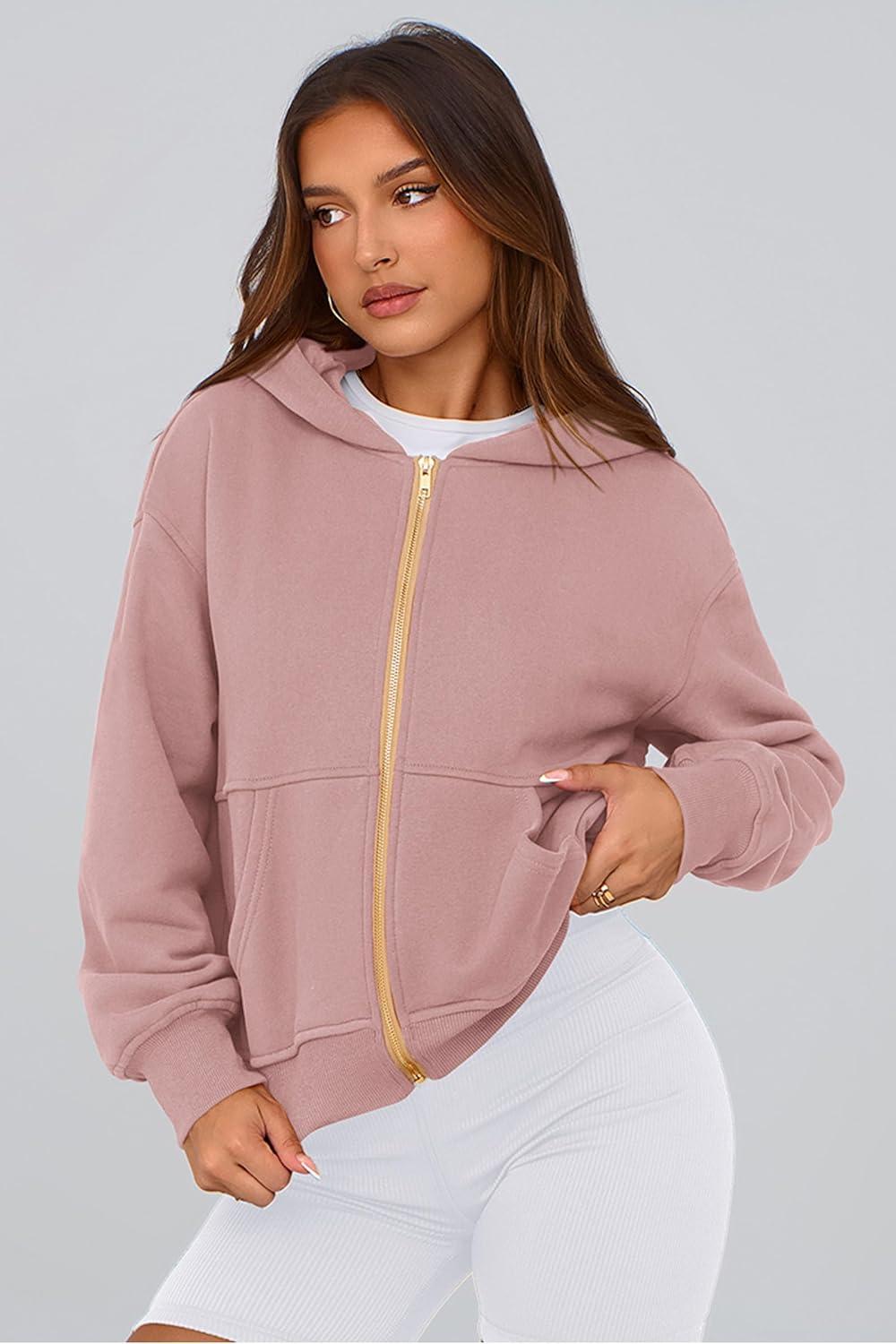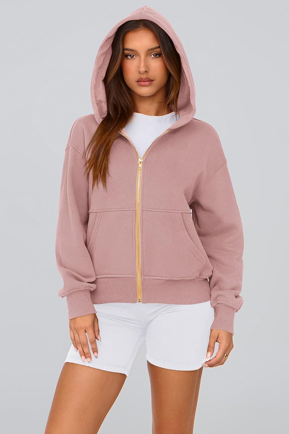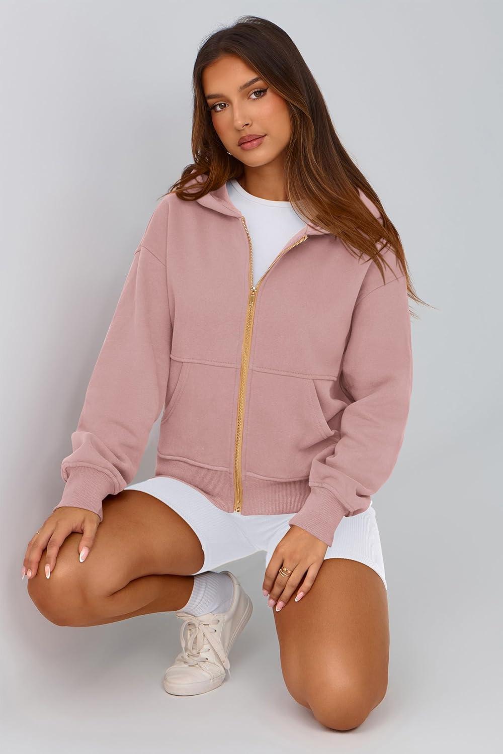 PRETTYGARDEN Hoodies for Women Sweatshirt Zip Up Hoodie Fall Fashion 2025 Trendy Long Sleeve Jackets Winter Clothing Outfits(Dusty Pink)