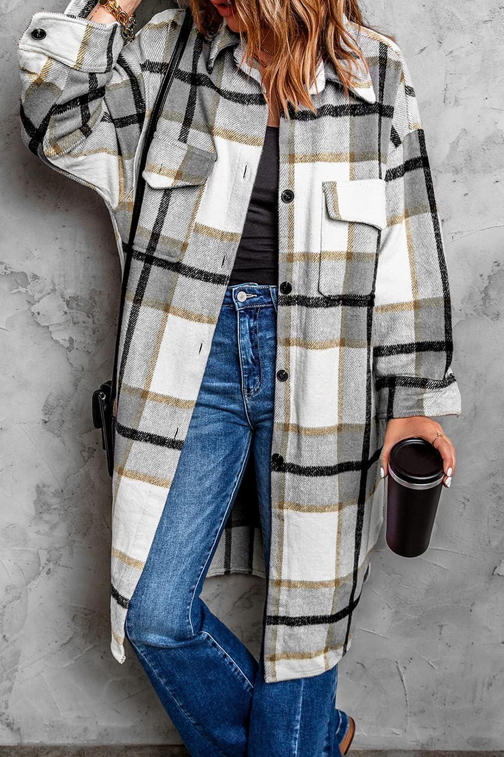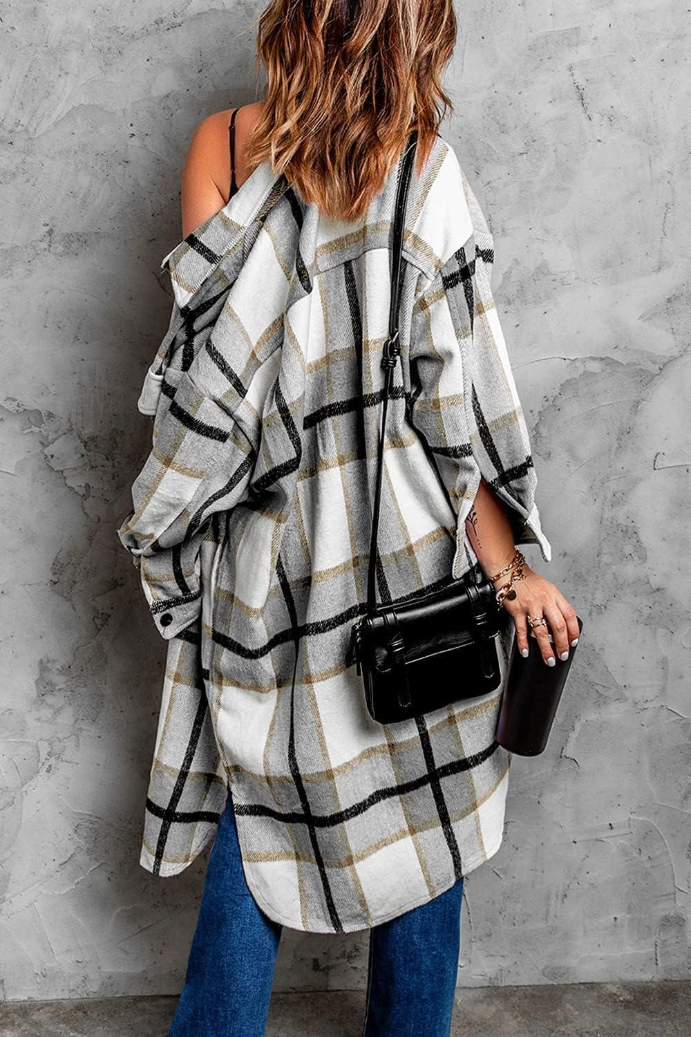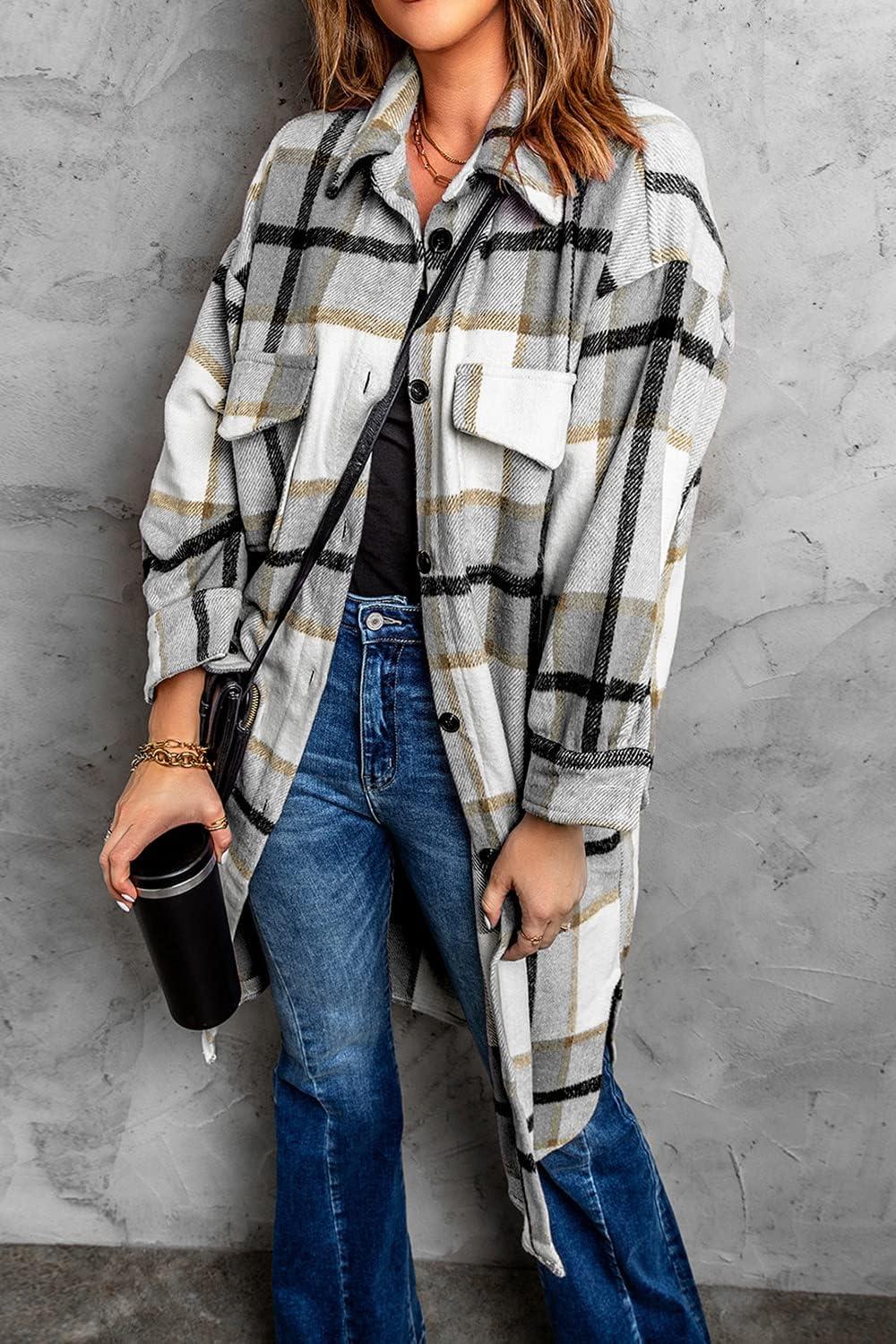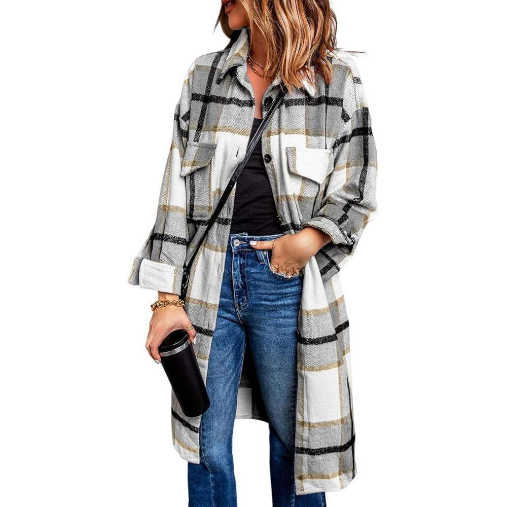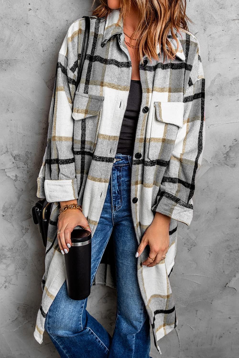 PRETTYGARDEN Jackets for Women 2025 Fall Plaid Shacket Long Sleeve Button Down Flannel Shirts Winter Coats Fashion Clothing(Grey)