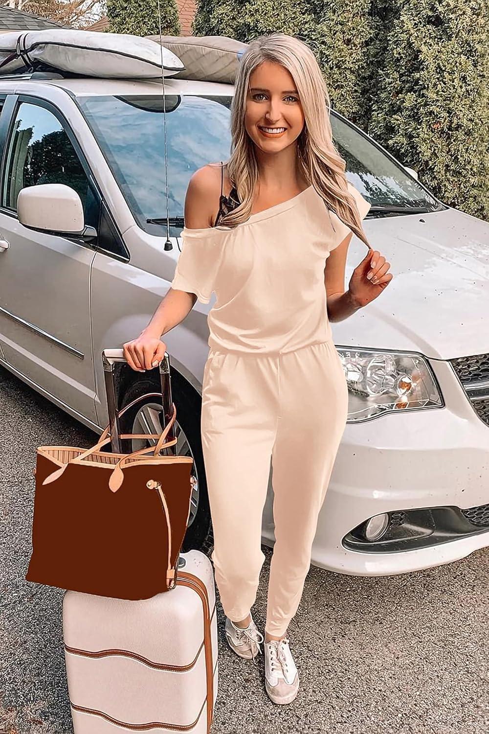 Get up to 60% off on PRETTYGARDEN Jumpsuits for Women 2025 Dressy Casual Off Shoulder Romper Outfits Spring Vacation Travel Summer Lounge Clothes(Beige) styles during our winter sale event.
