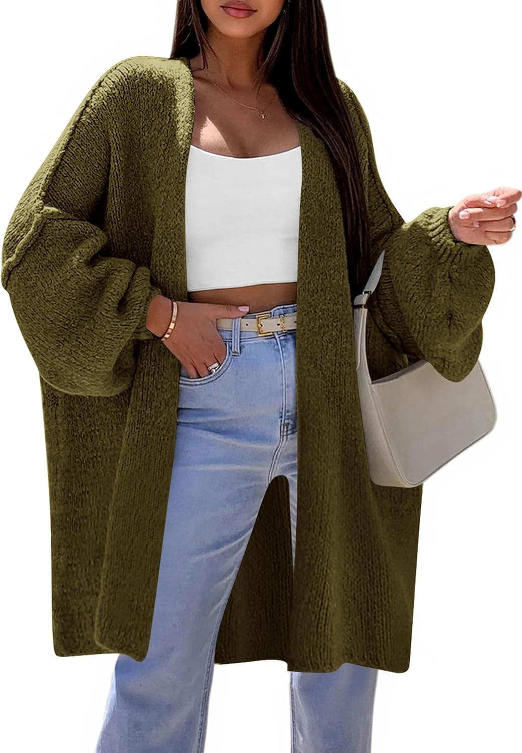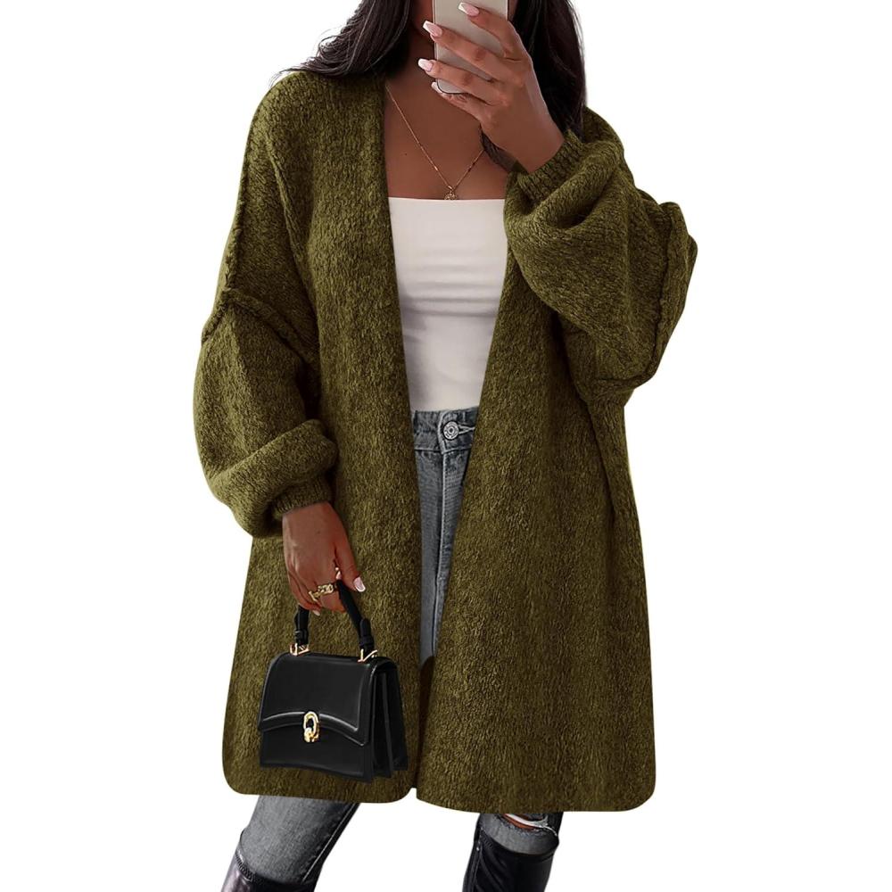 PRETTYGARDEN Long Cardigan Sweaters for Women Trendy Fall 2025 Oversized Knit Sweater Jacket Coats Winter Fashion Clothing(Army Green)