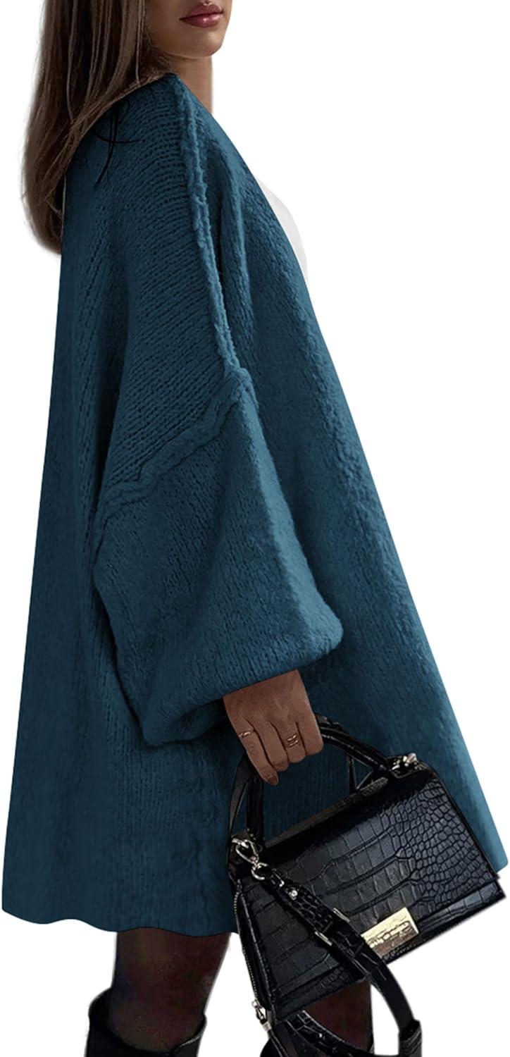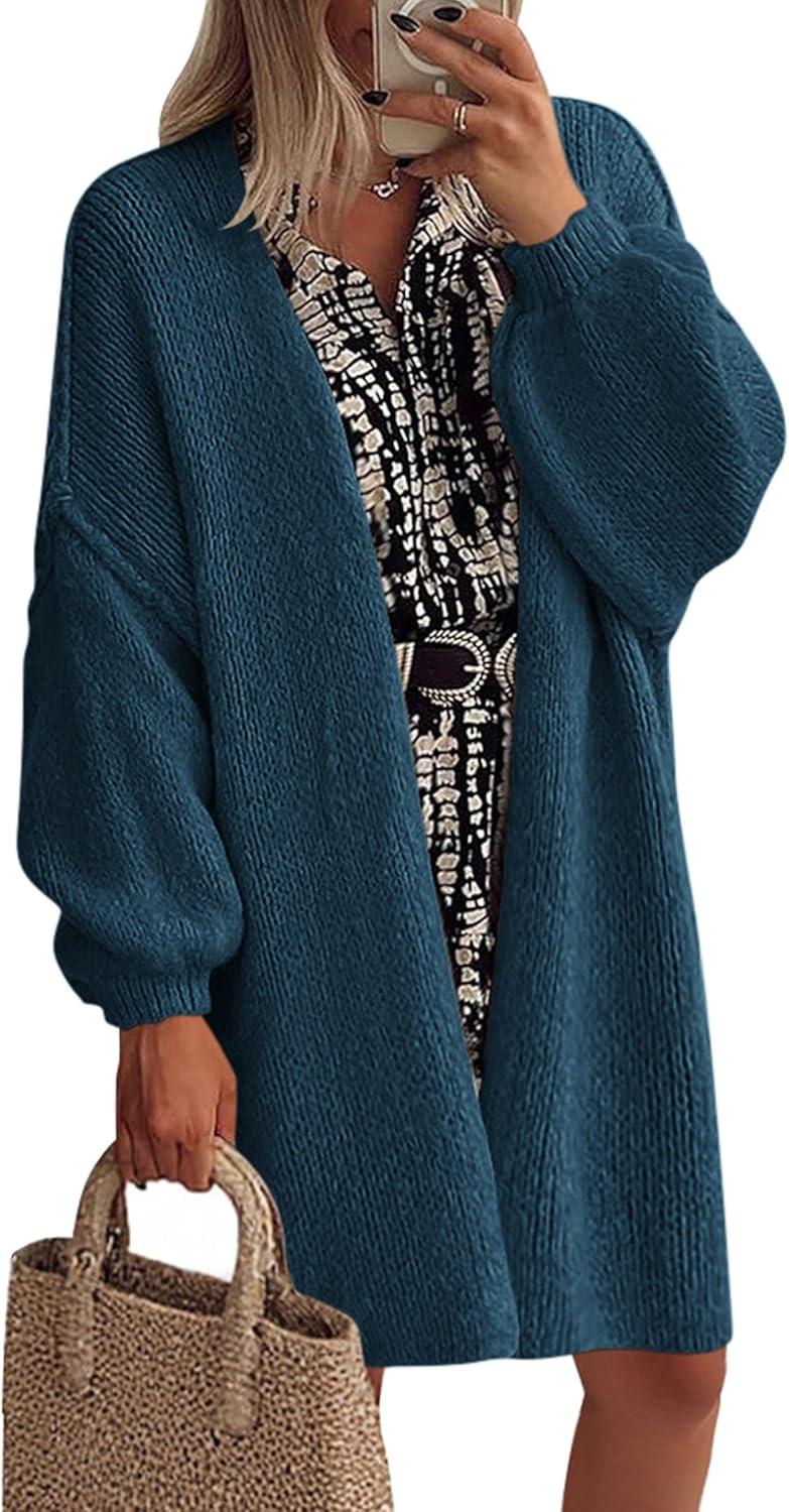 PRETTYGARDEN Long Cardigan Sweaters for Women Trendy Fall 2025 Oversized Knit Sweater Jacket Coats Winter Fashion Clothing(Dark Royal Blue)