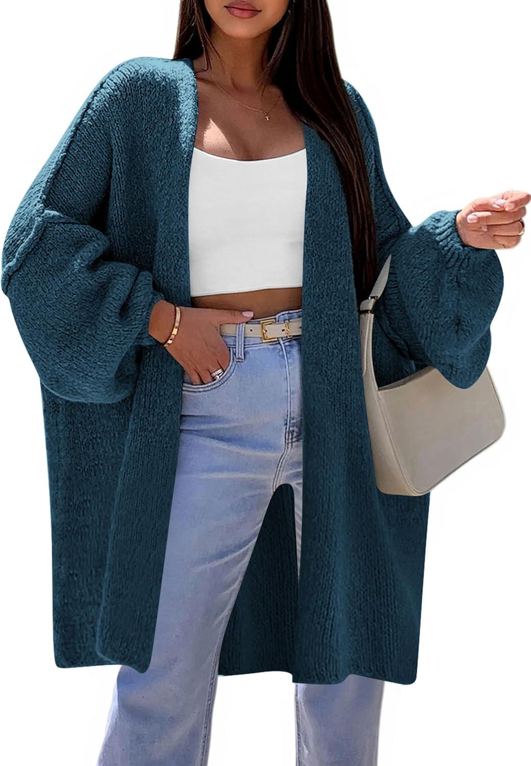 PRETTYGARDEN Long Cardigan Sweaters for Women Trendy Fall 2025 Oversized Knit Sweater Jacket Coats Winter Fashion Clothing(Haze Blue)