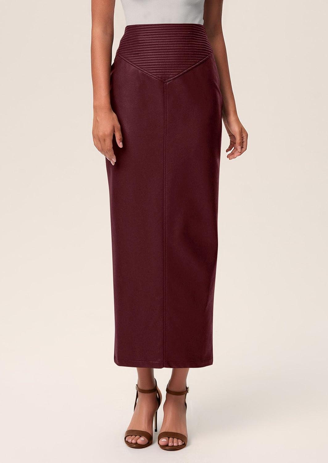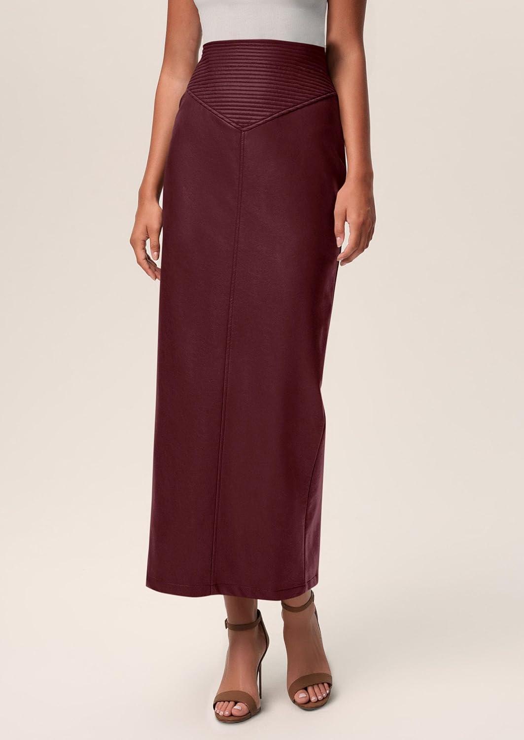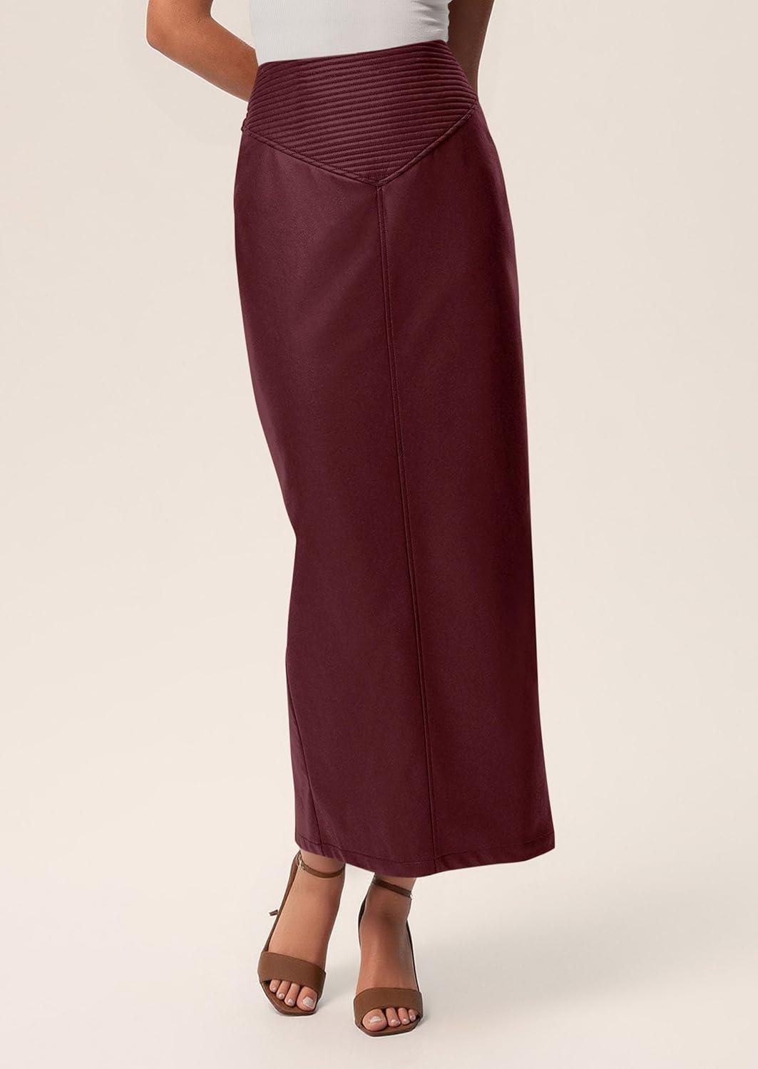 PRETTYGARDEN Long Skirts for Women 2025 Fall Fashion Clothing Faux Leather High Waist Dressy Casual Slit Pencil Maxi Skirt(Burgundy)
