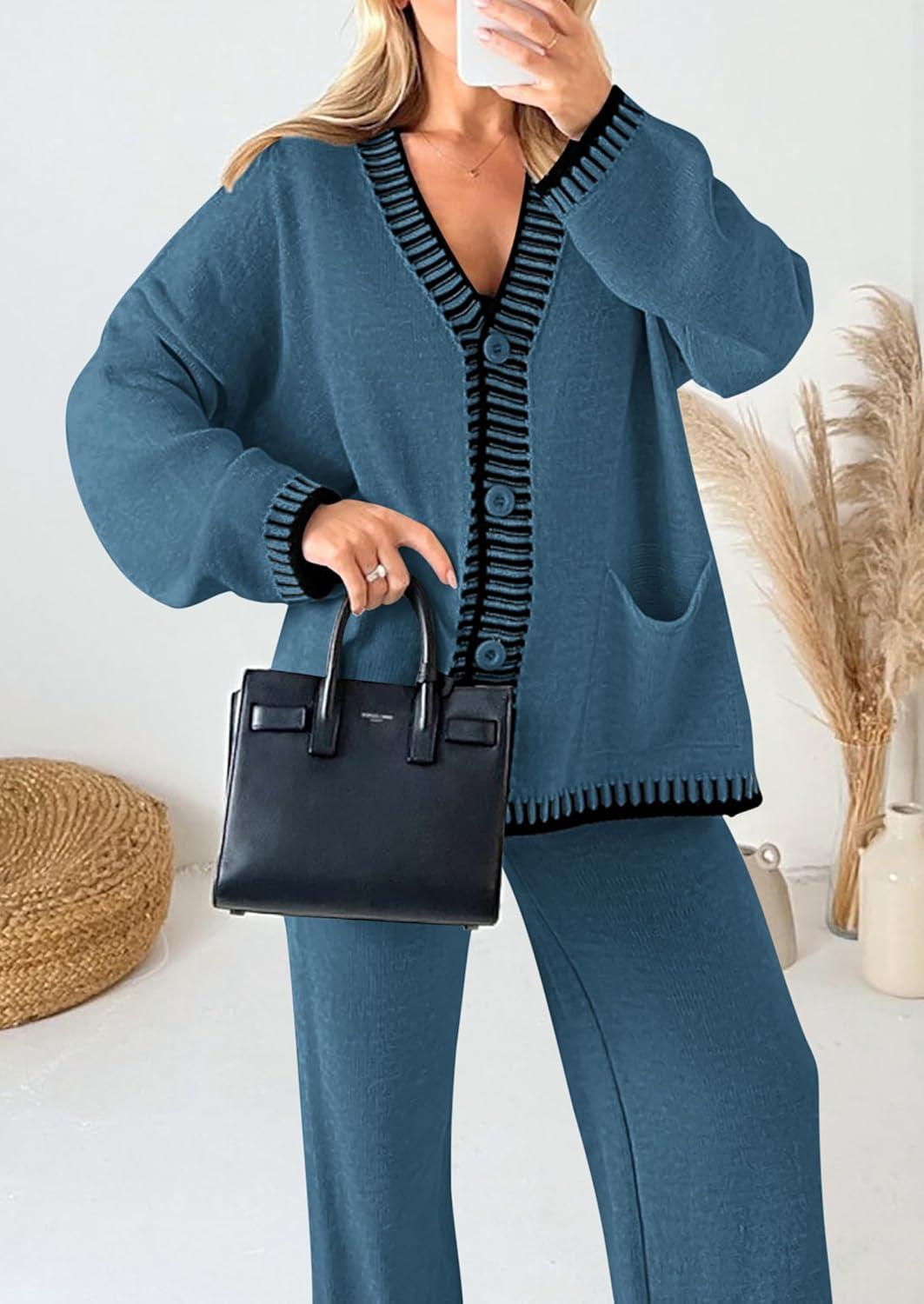 PRETTYGARDEN Lounge Sets for Women Fall 2025 Loungewear 2 Piece Outfits Cardigan Sweaters Track Suit Matching Winter Clothing(Grey Blue)