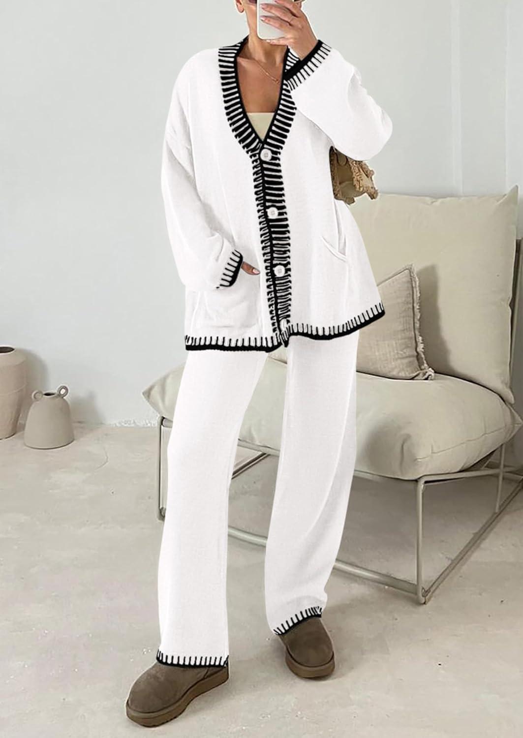 PRETTYGARDEN Lounge Sets for Women Fall 2025 Loungewear 2 Piece Outfits Cardigan Sweaters Track Suit Matching Winter Clothing(White)