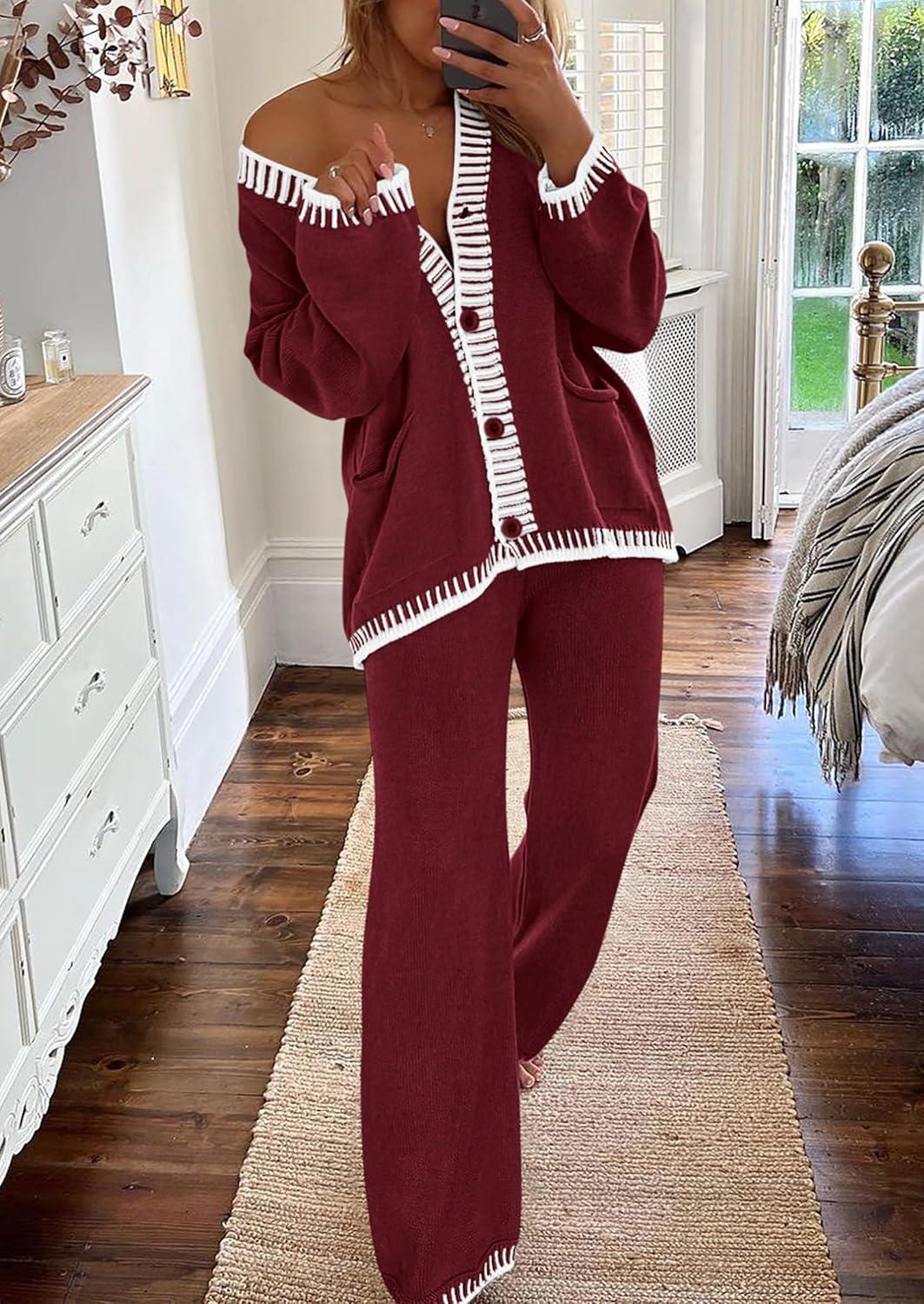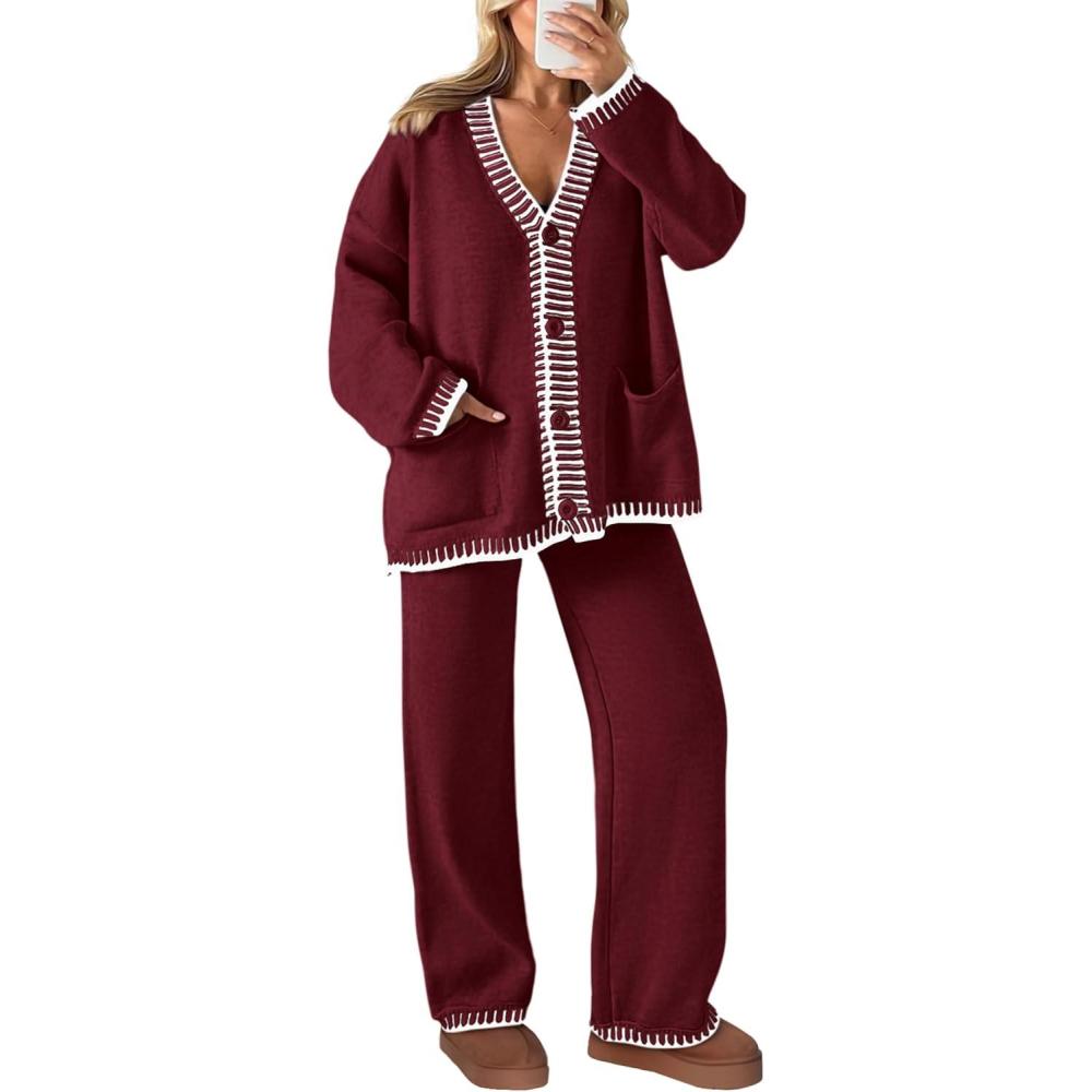 PRETTYGARDEN Lounge Sets for Women Fall 2025 Loungewear 2 Piece Outfits Cardigan Sweaters Track Suit Matching Winter Clothing(Wine Red)