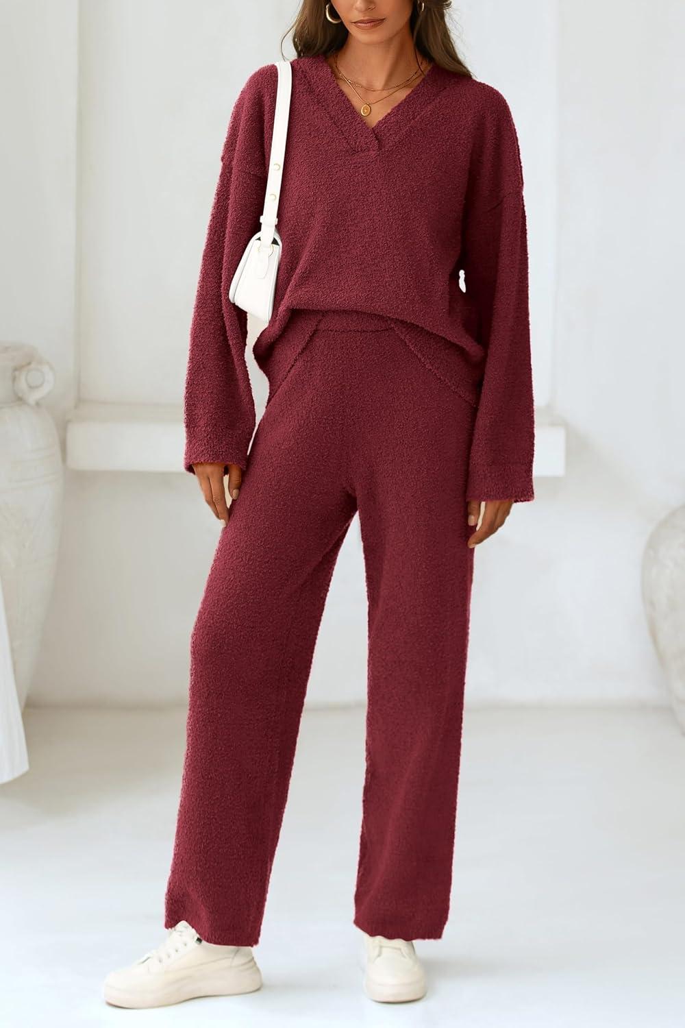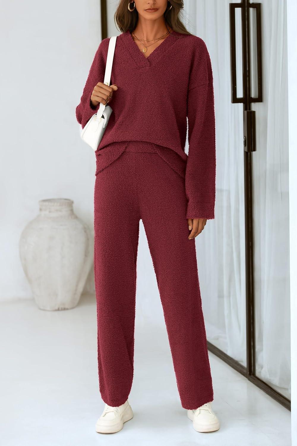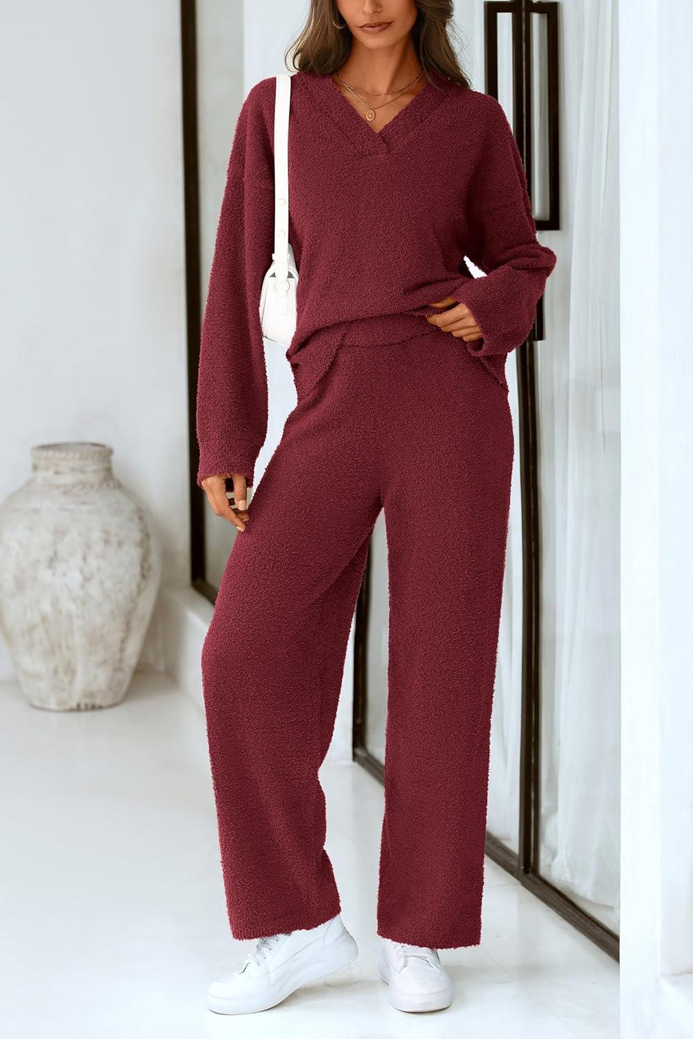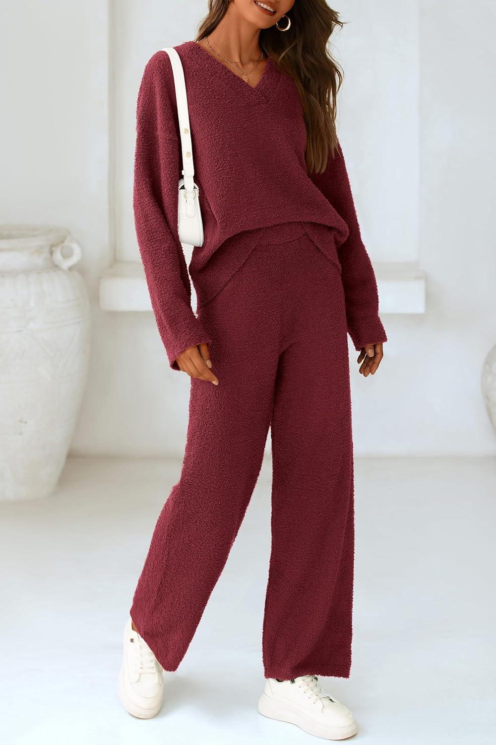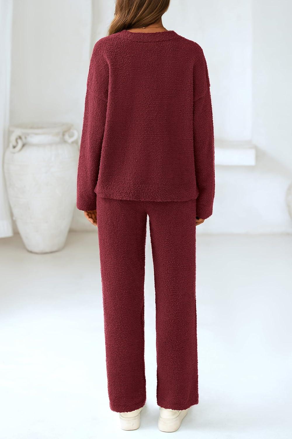 PRETTYGARDEN Lounge Sets for Women Two Piece Sweaters Pajama Set Fall Fashion 2025 Loungewear Outfits Matching Winter Clothes(Wine Red)
