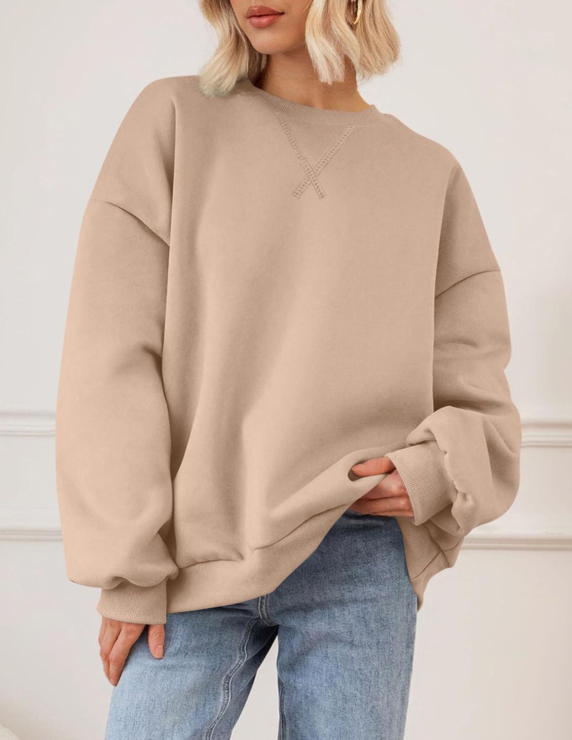 PRETTYGARDEN Oversized Sweatshirt for Women Fall Outfits 2025 Crewneck Long Sleeve Tops Fleece Pullover Winter Clothing(Khaki)