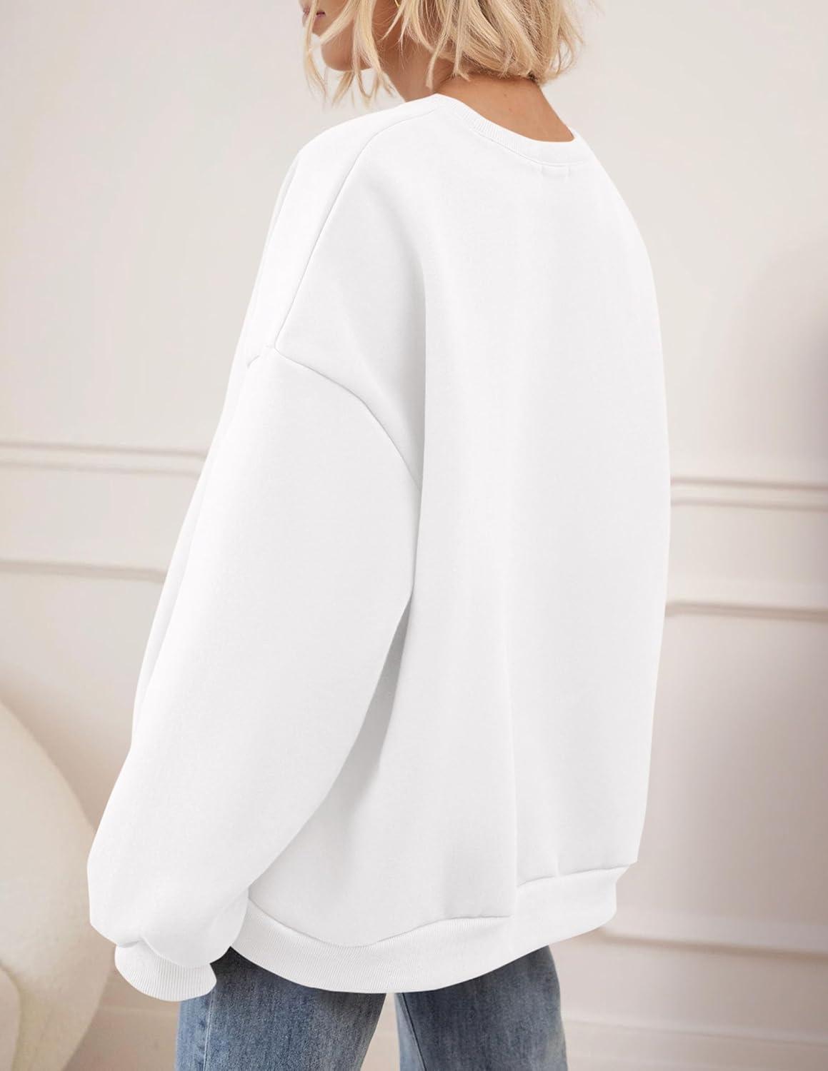 PRETTYGARDEN Oversized Sweatshirt for Women Fall Outfits 2025 Crewneck Long Sleeve Tops Fleece Pullover Winter Clothing(White)