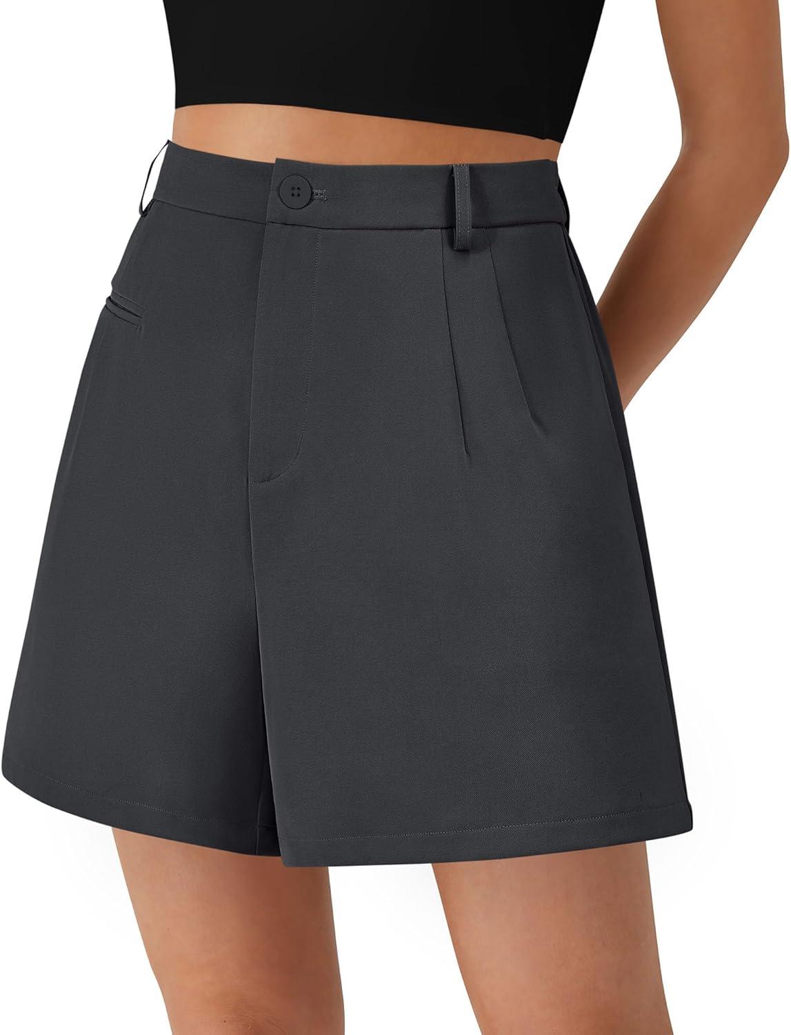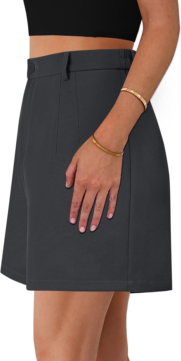 PRETTYGARDEN Shorts for Women Dressy 2025 Summer Elastic High Waisted Wide Leg Business Casual Work Shorts with Pockets(Grey)