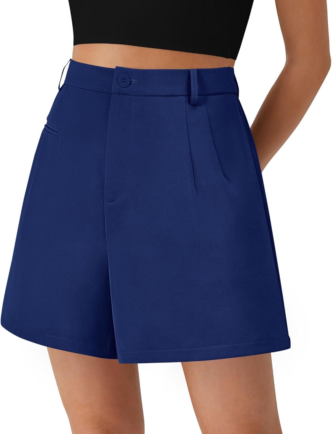 PRETTYGARDEN Shorts for Women Dressy 2025 Summer Elastic High Waisted Wide Leg Business Casual Work Shorts with Pockets(Royal Blue)
