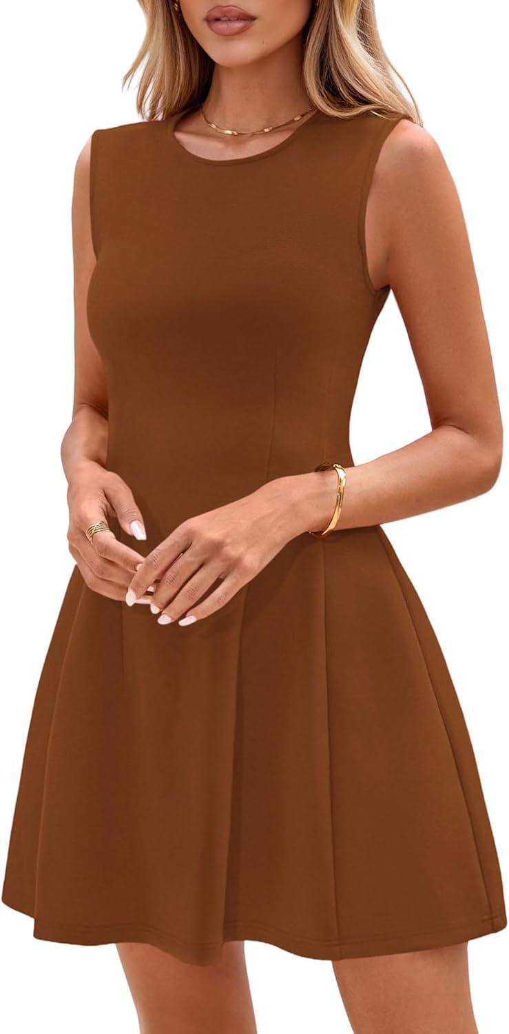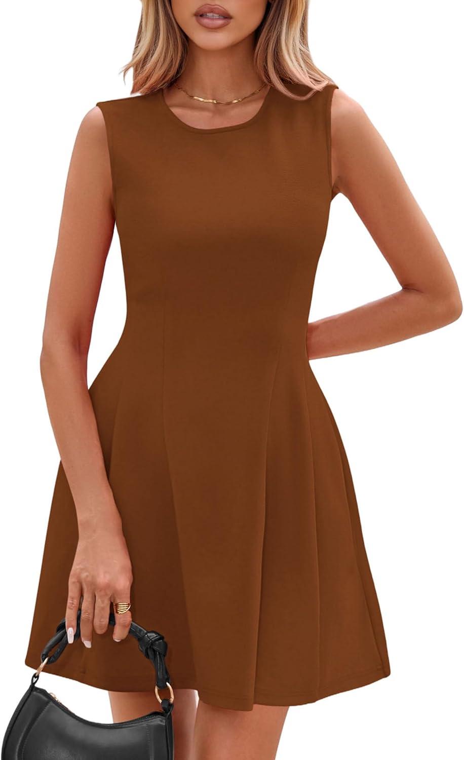 PRETTYGARDEN Summer Dresses for Women 2025 Elegant Classy A Line Business Casual Work Graduation Cocktail Short Dress(Brown)