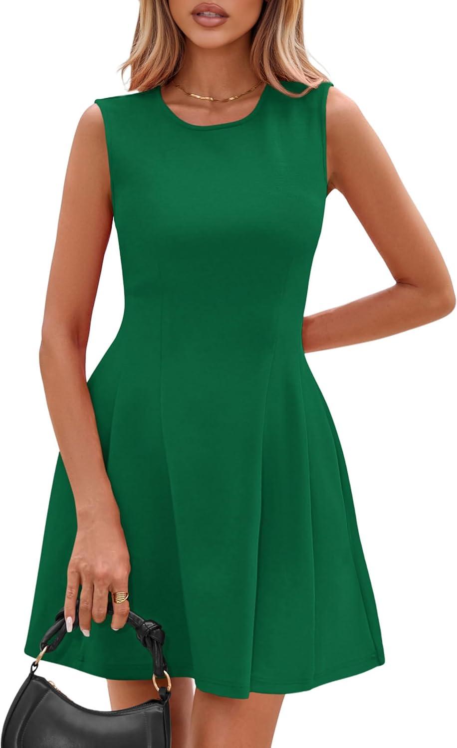 PRETTYGARDEN Summer Dresses for Women 2025 Elegant Classy A Line Business Casual Work Graduation Cocktail Short Dress(Green)